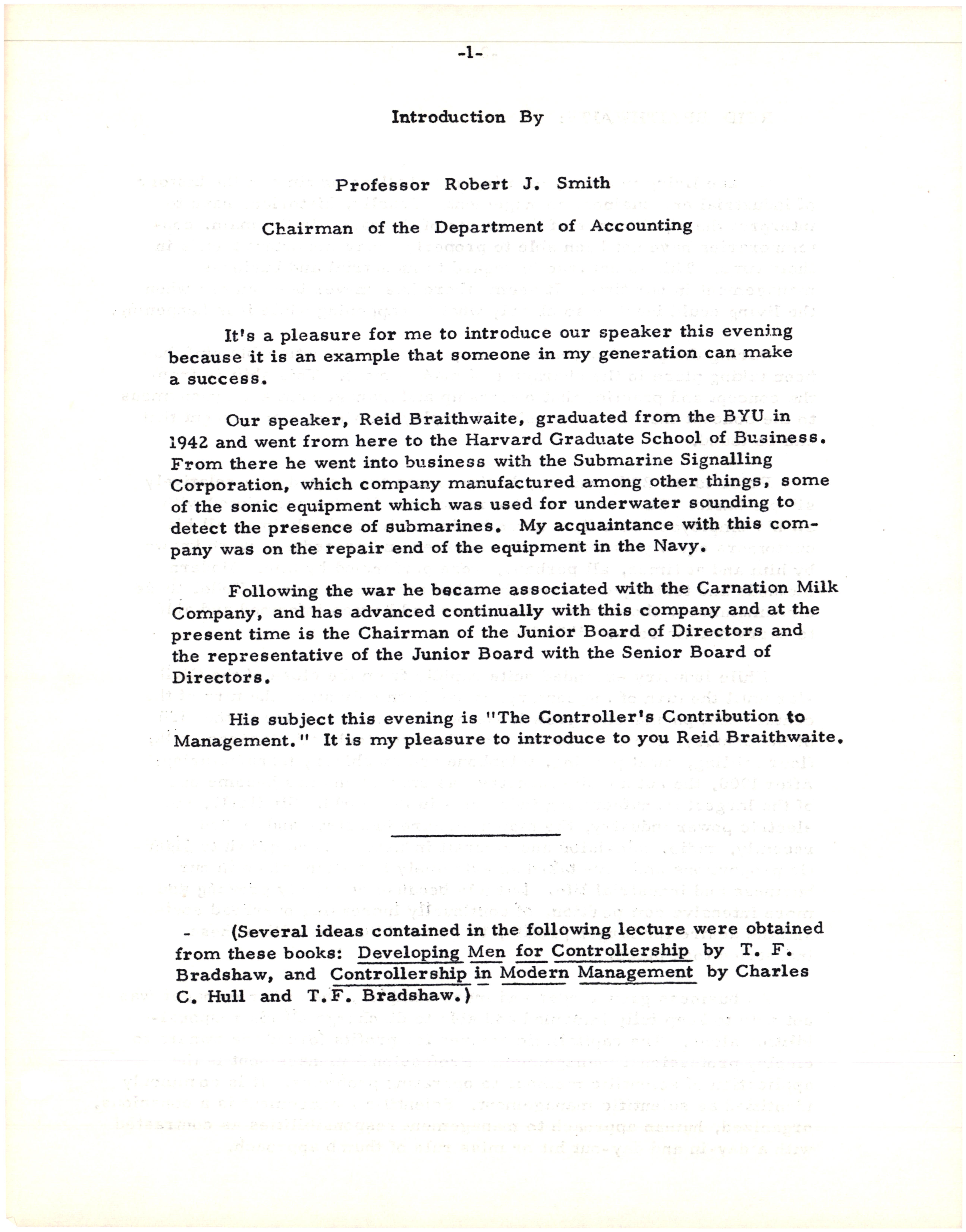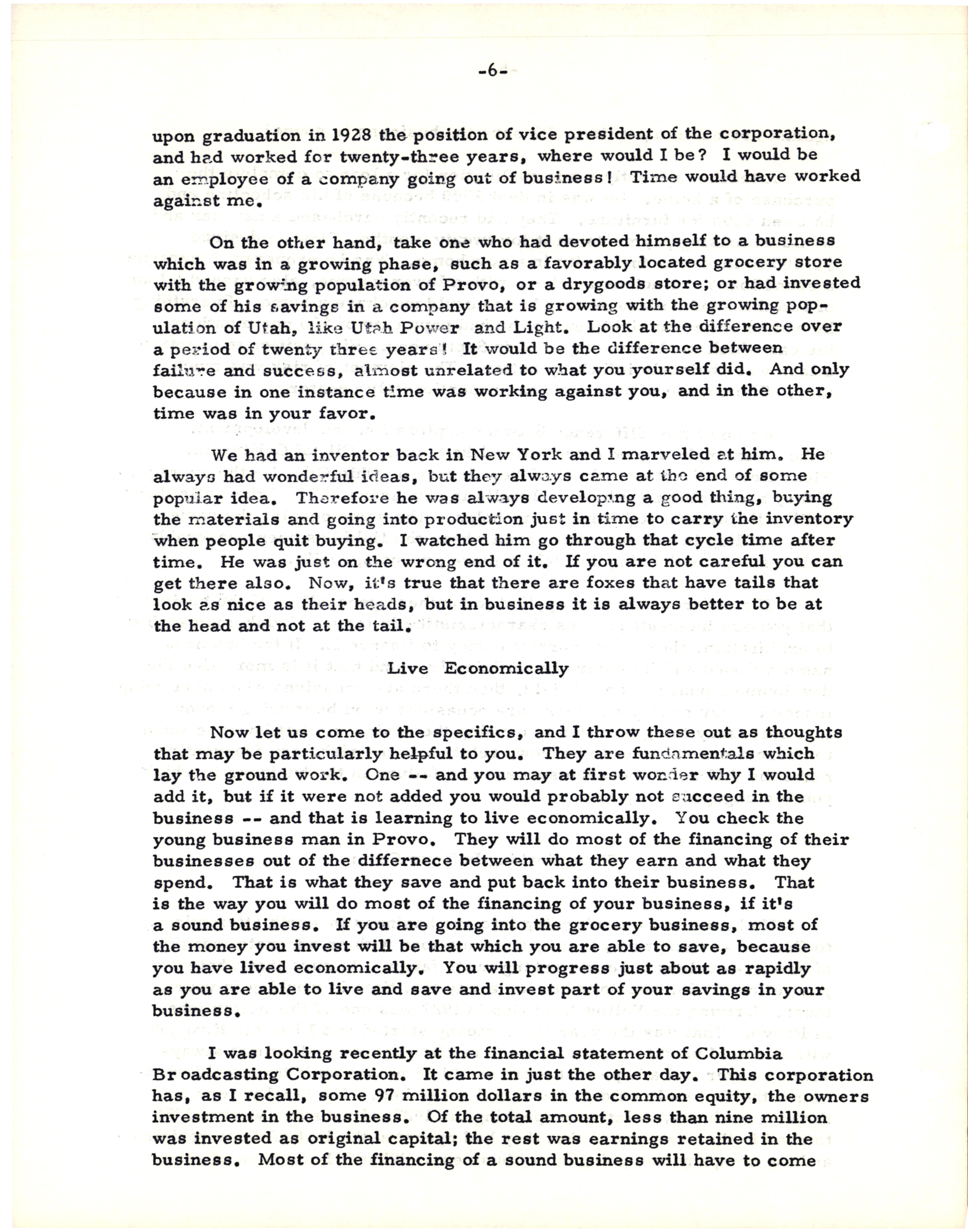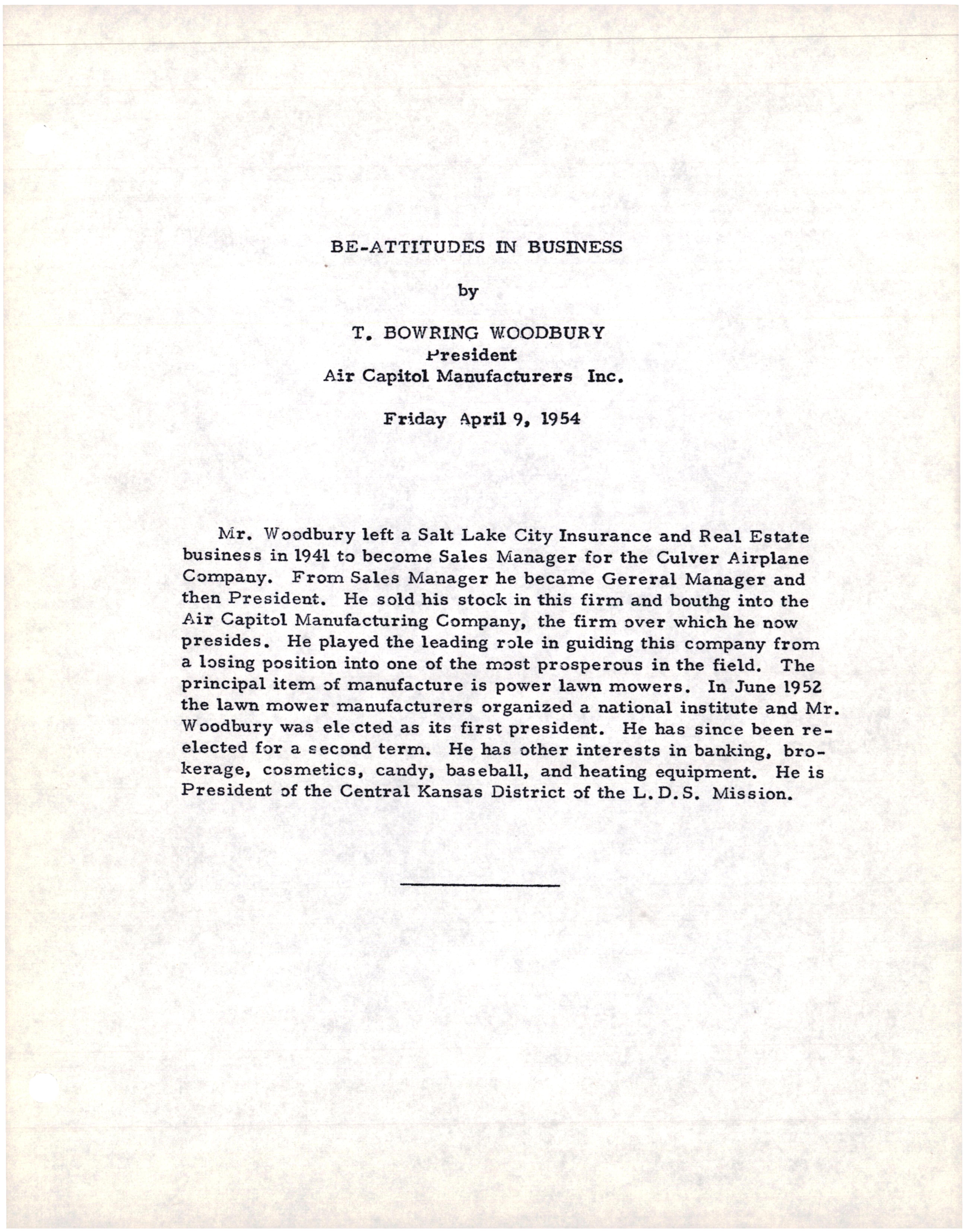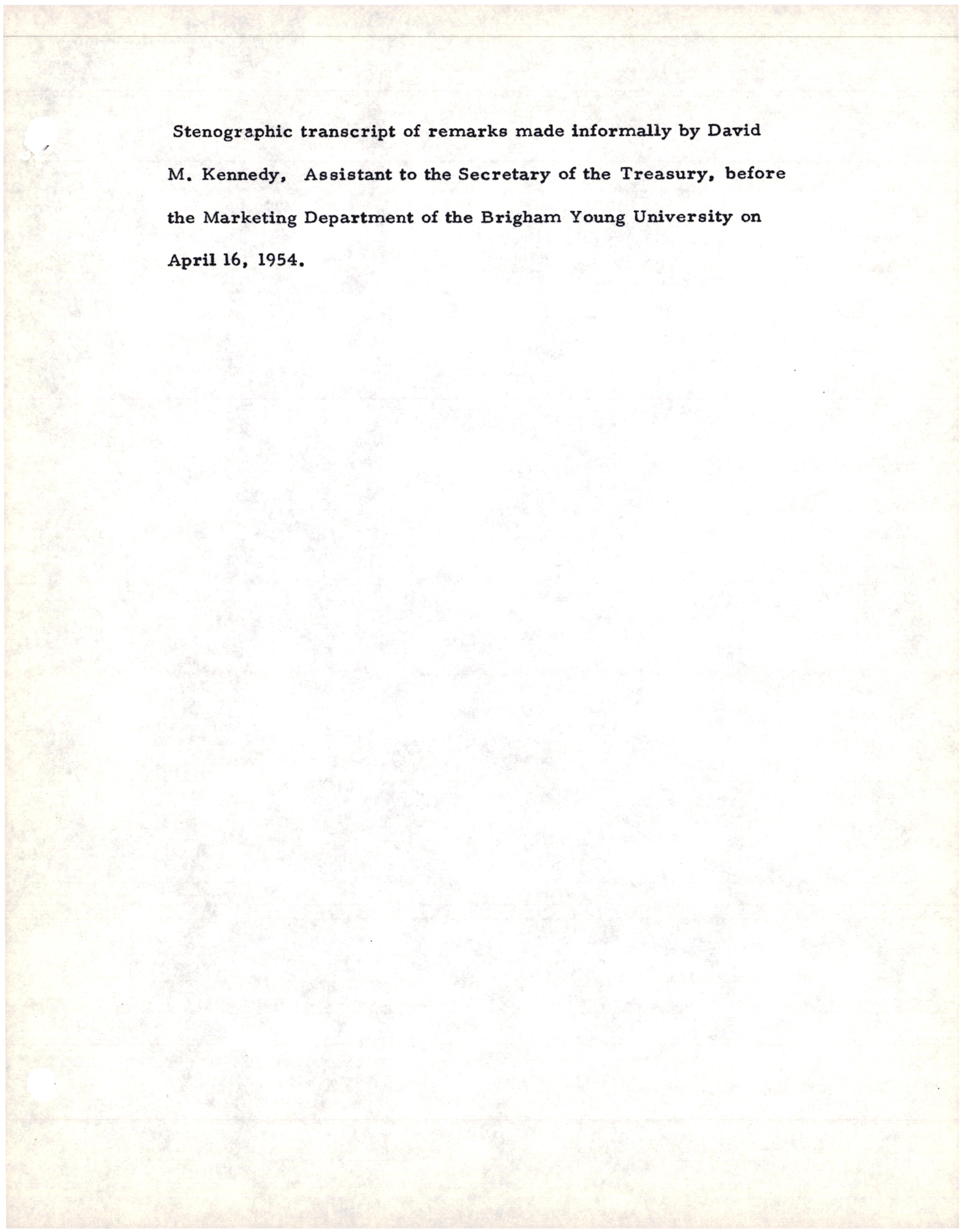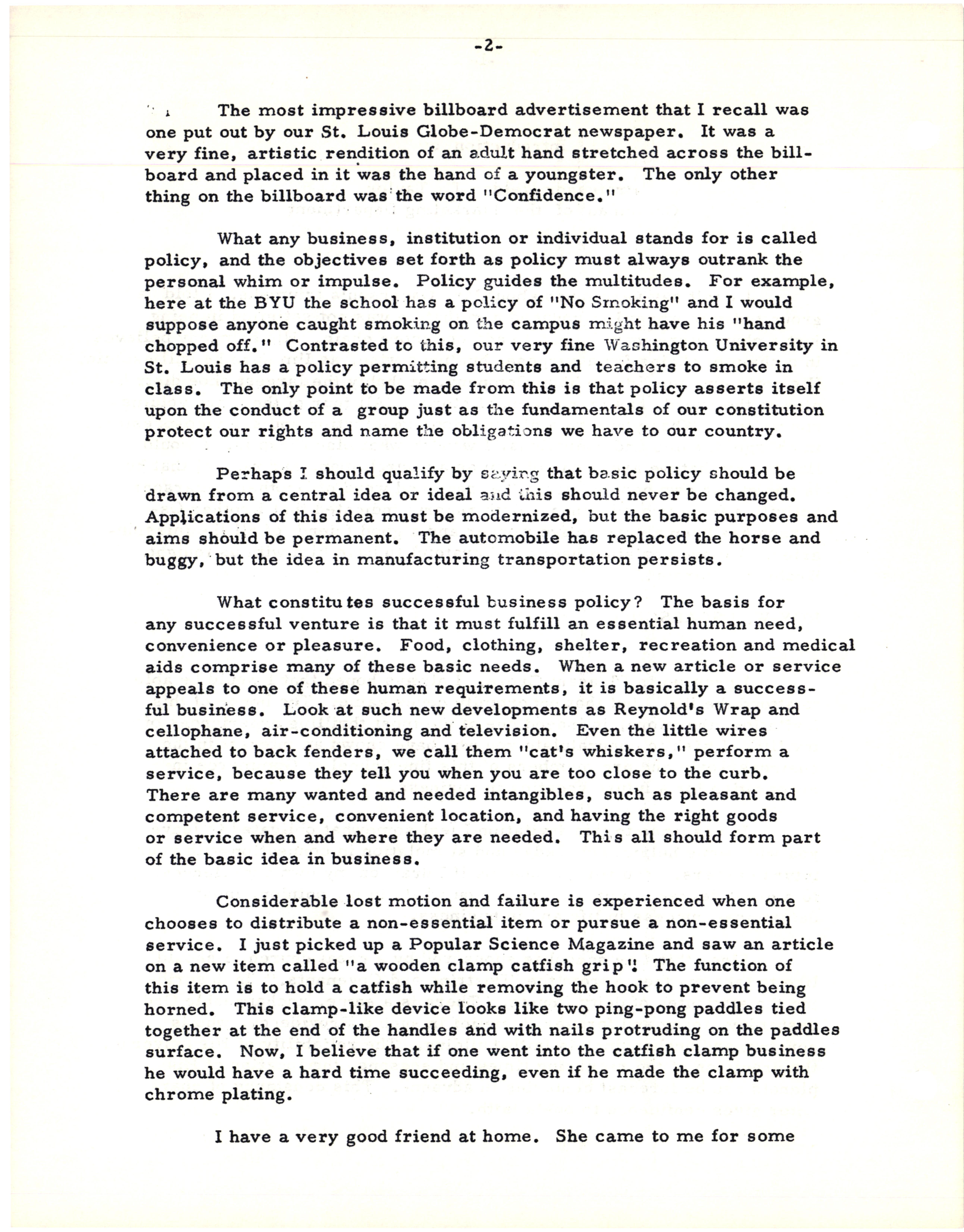 1954 Lectures on Executive Policy from College of Commerce at BYU
