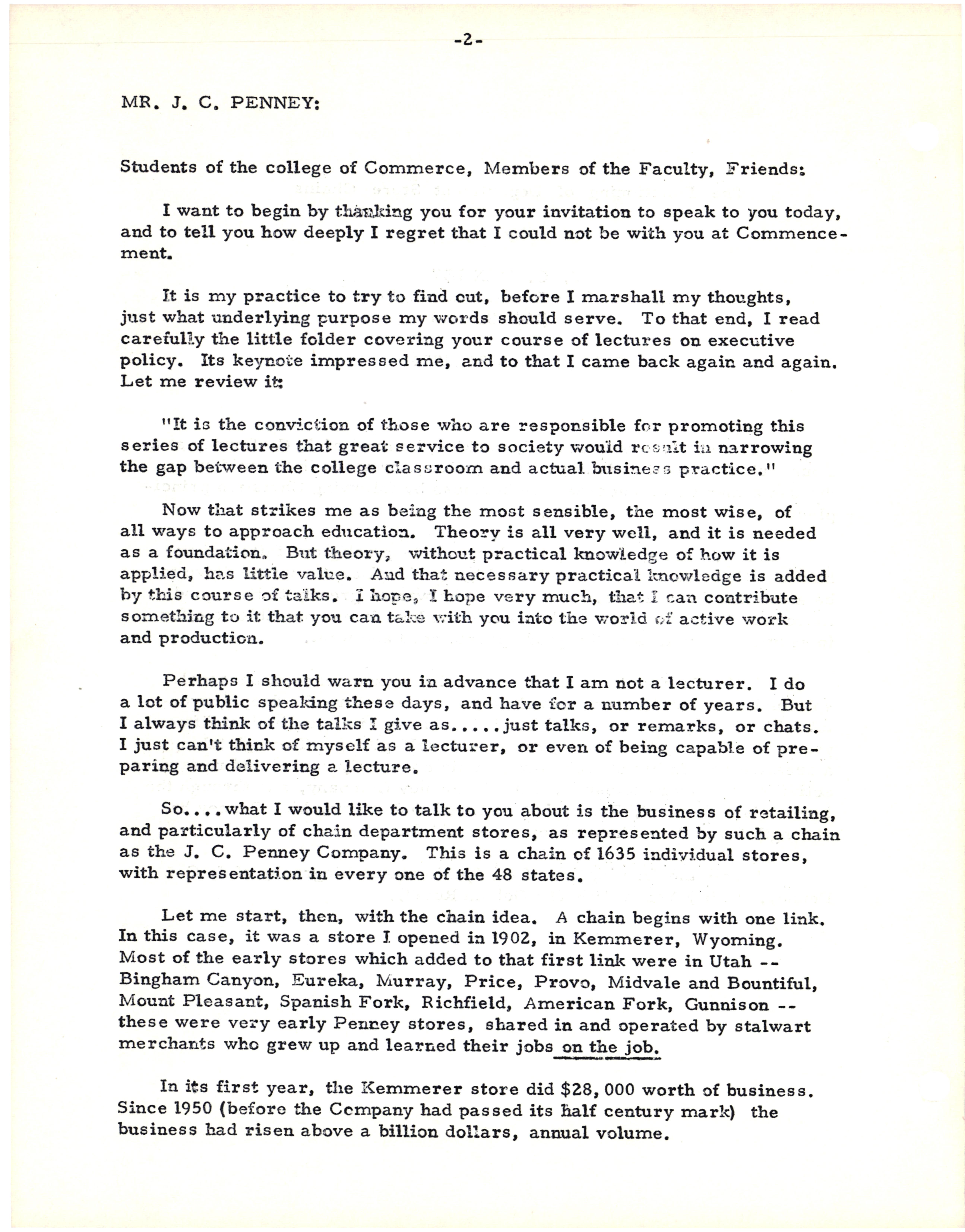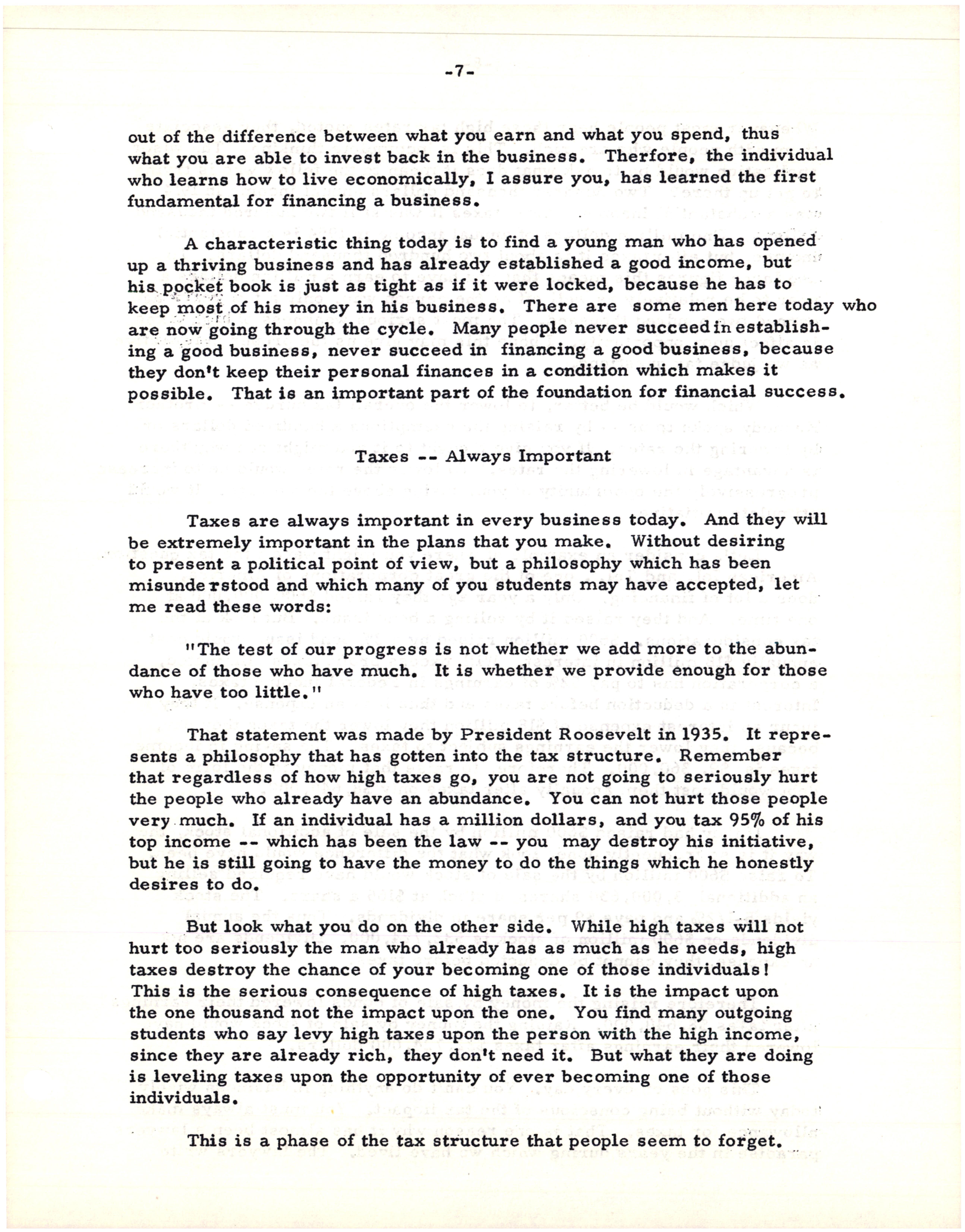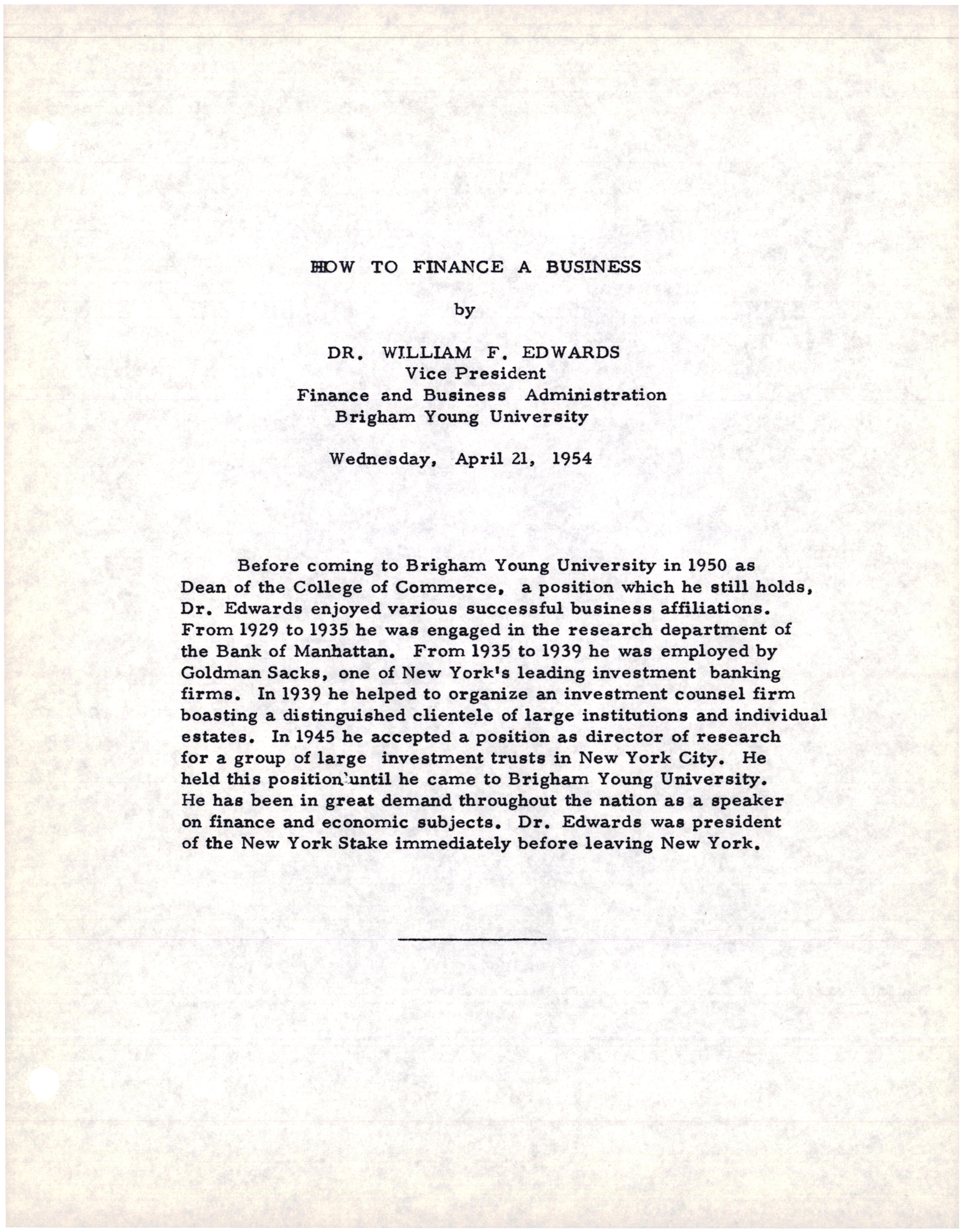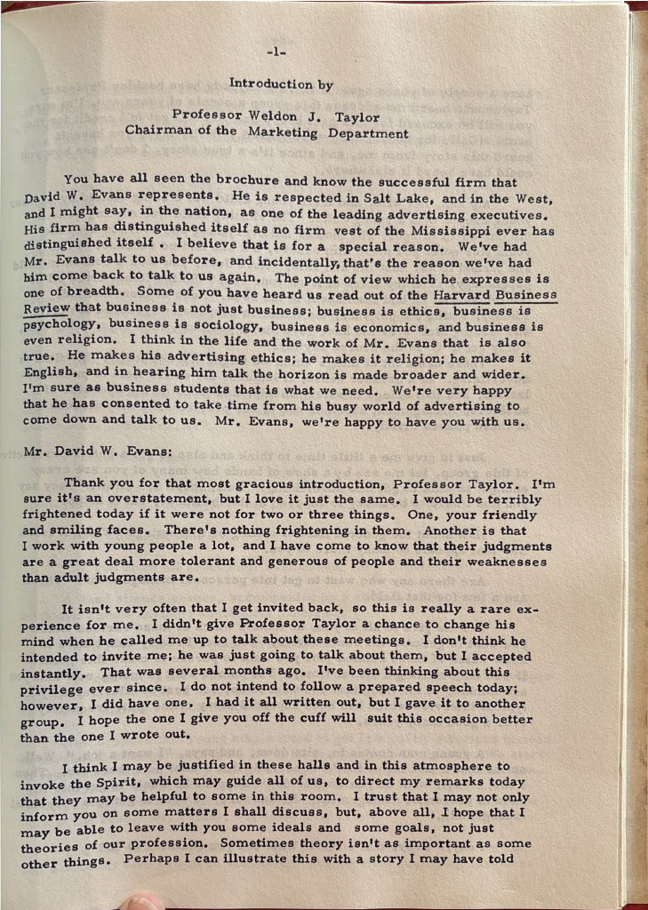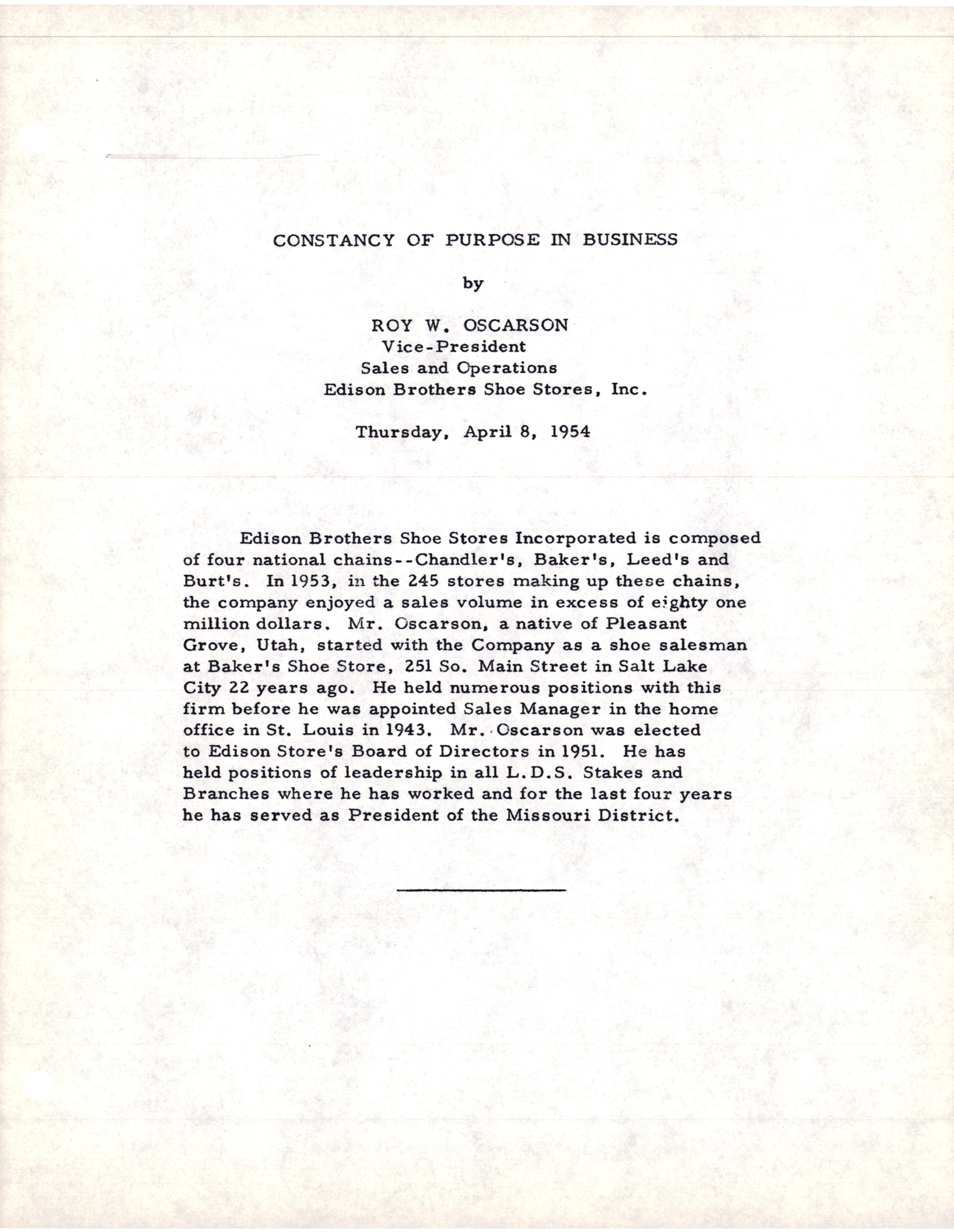 1954 Lectures on Executive Policy from College of Commerce at BYU