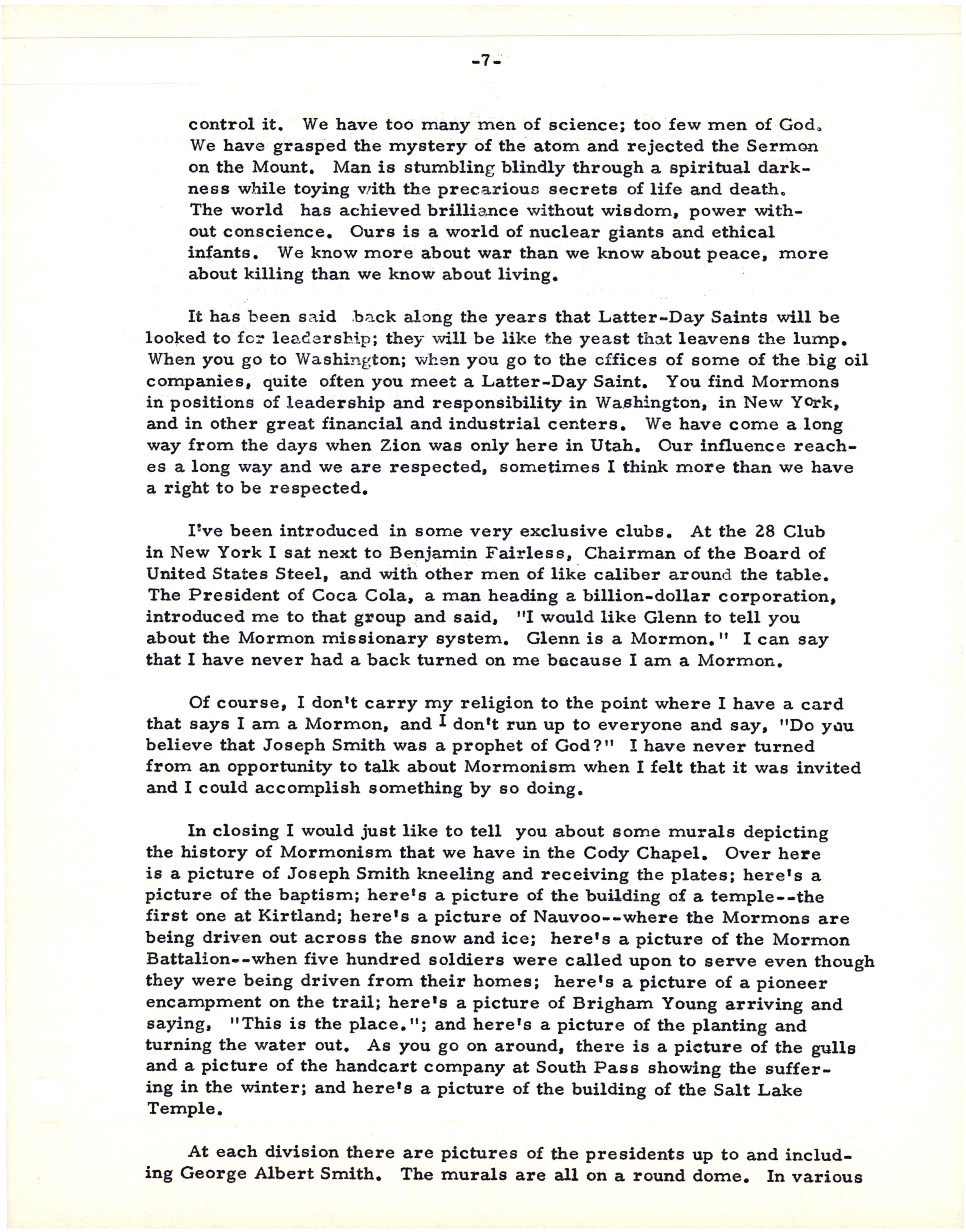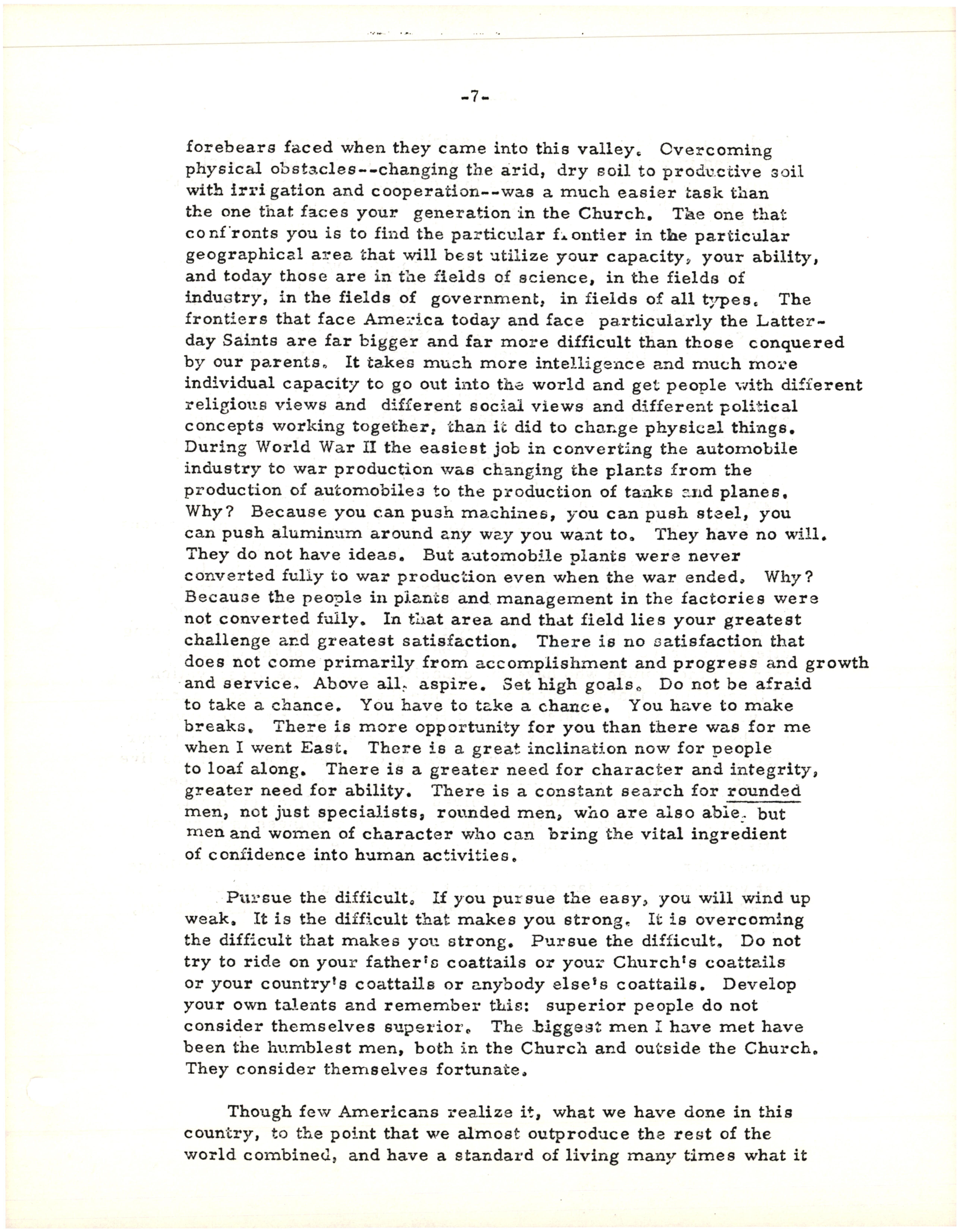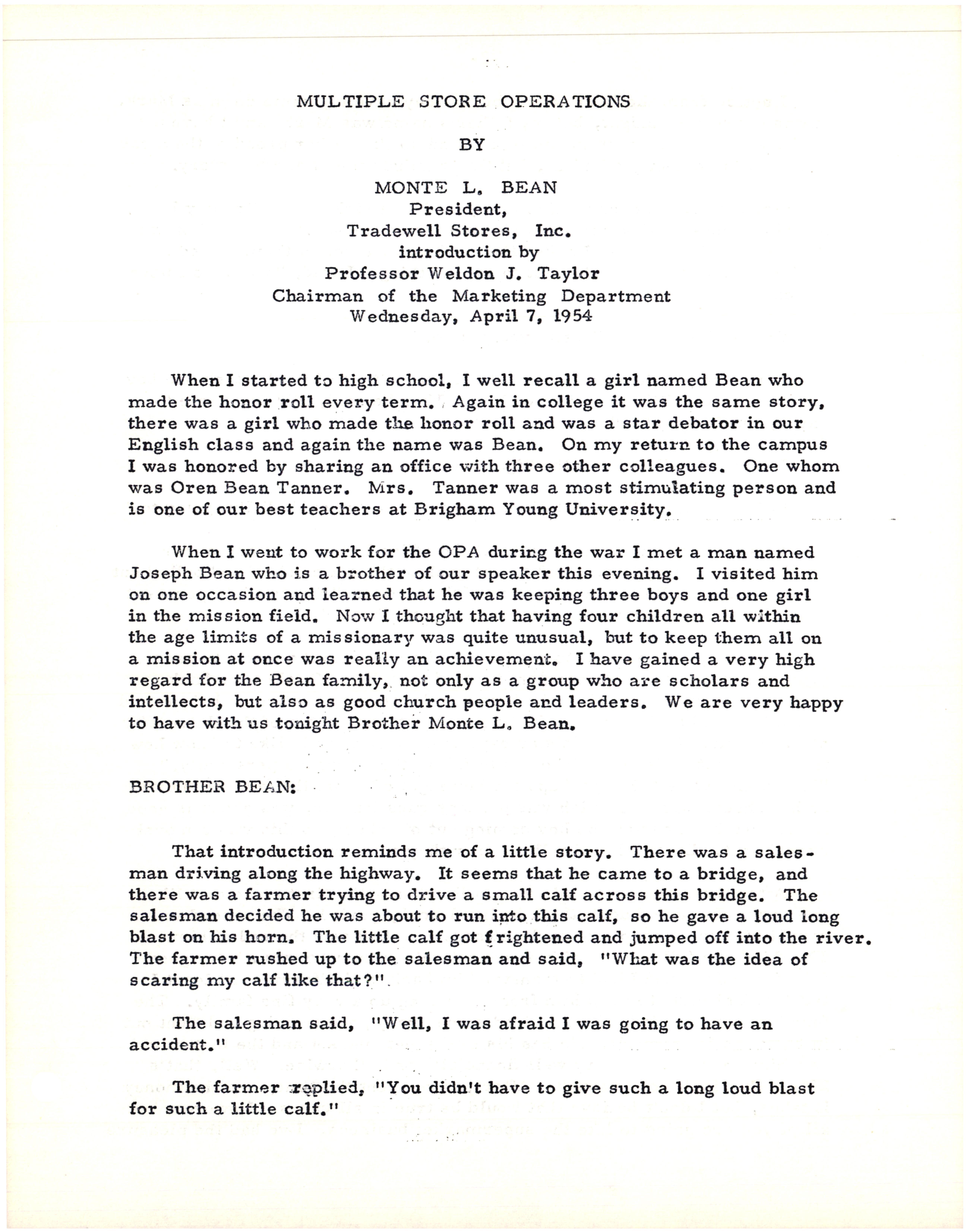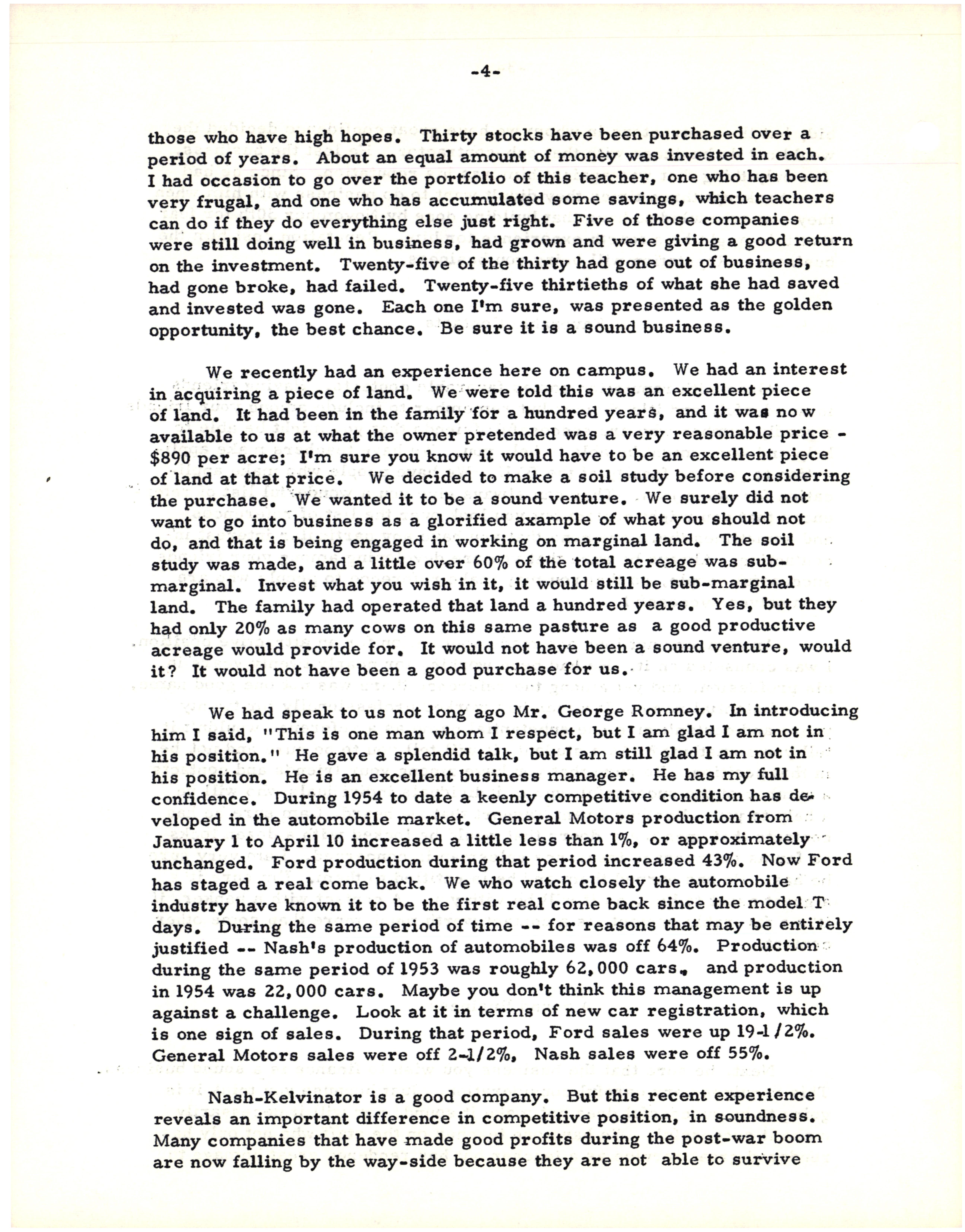 1954 Lectures on Executive Policy from College of Commerce at BYU