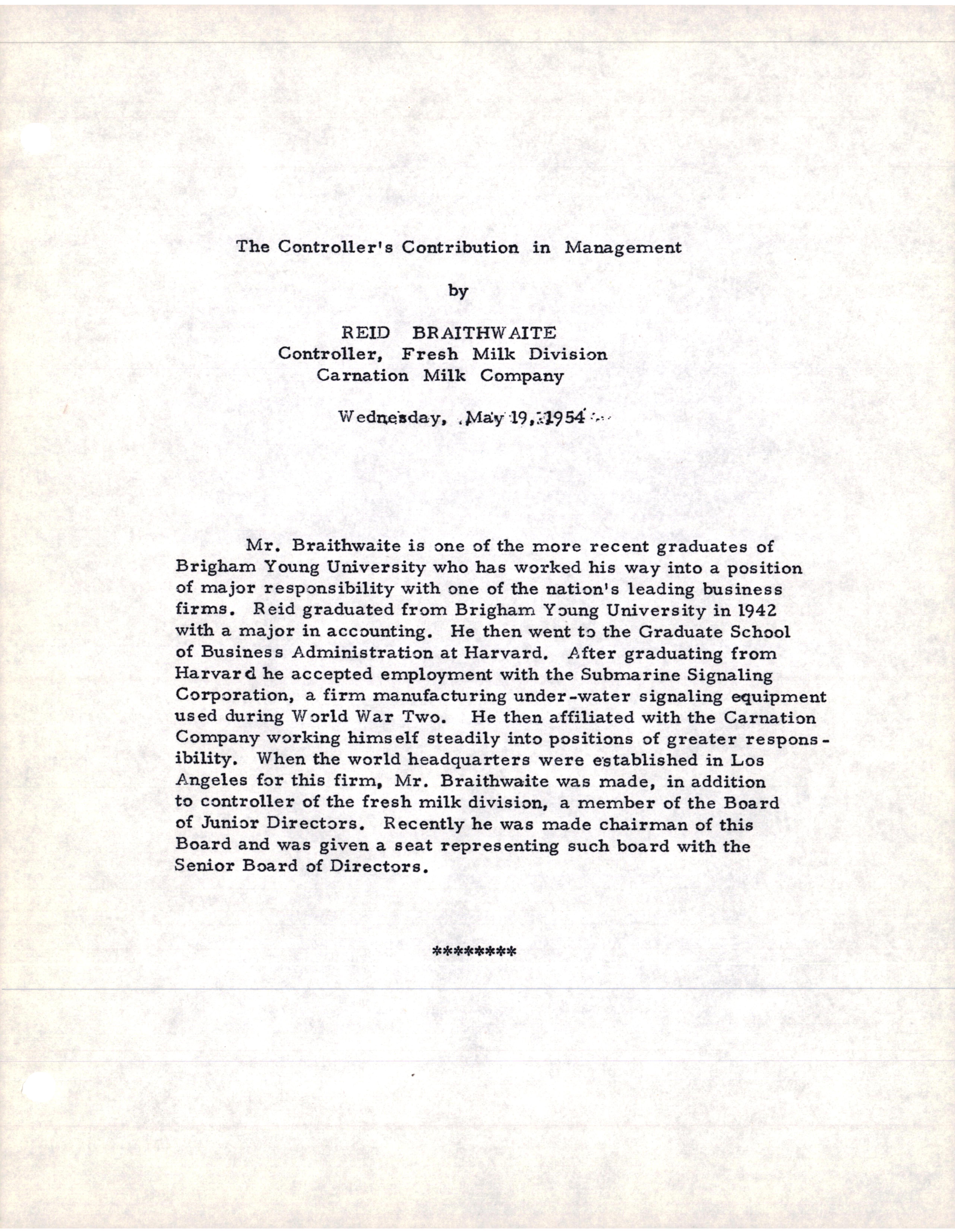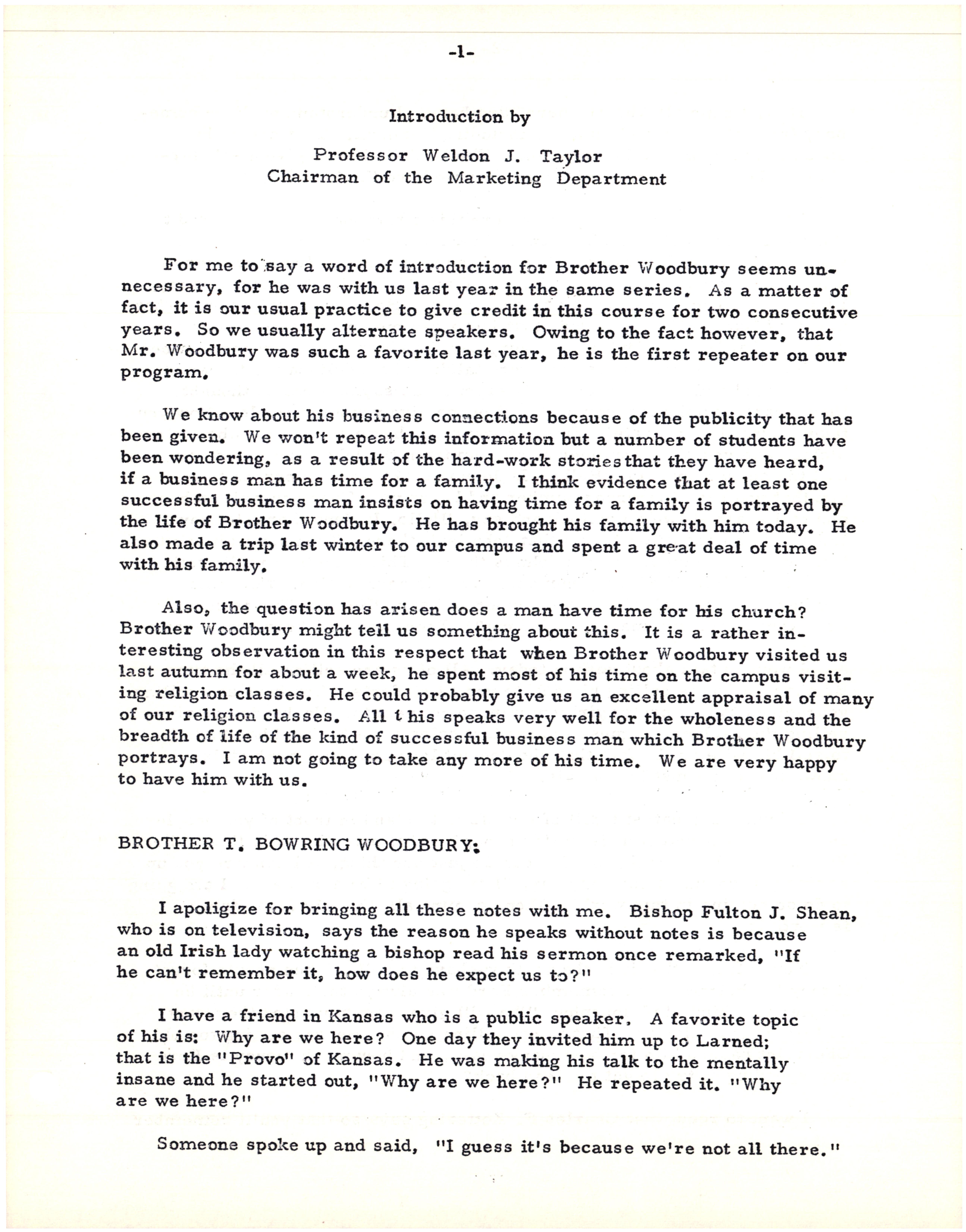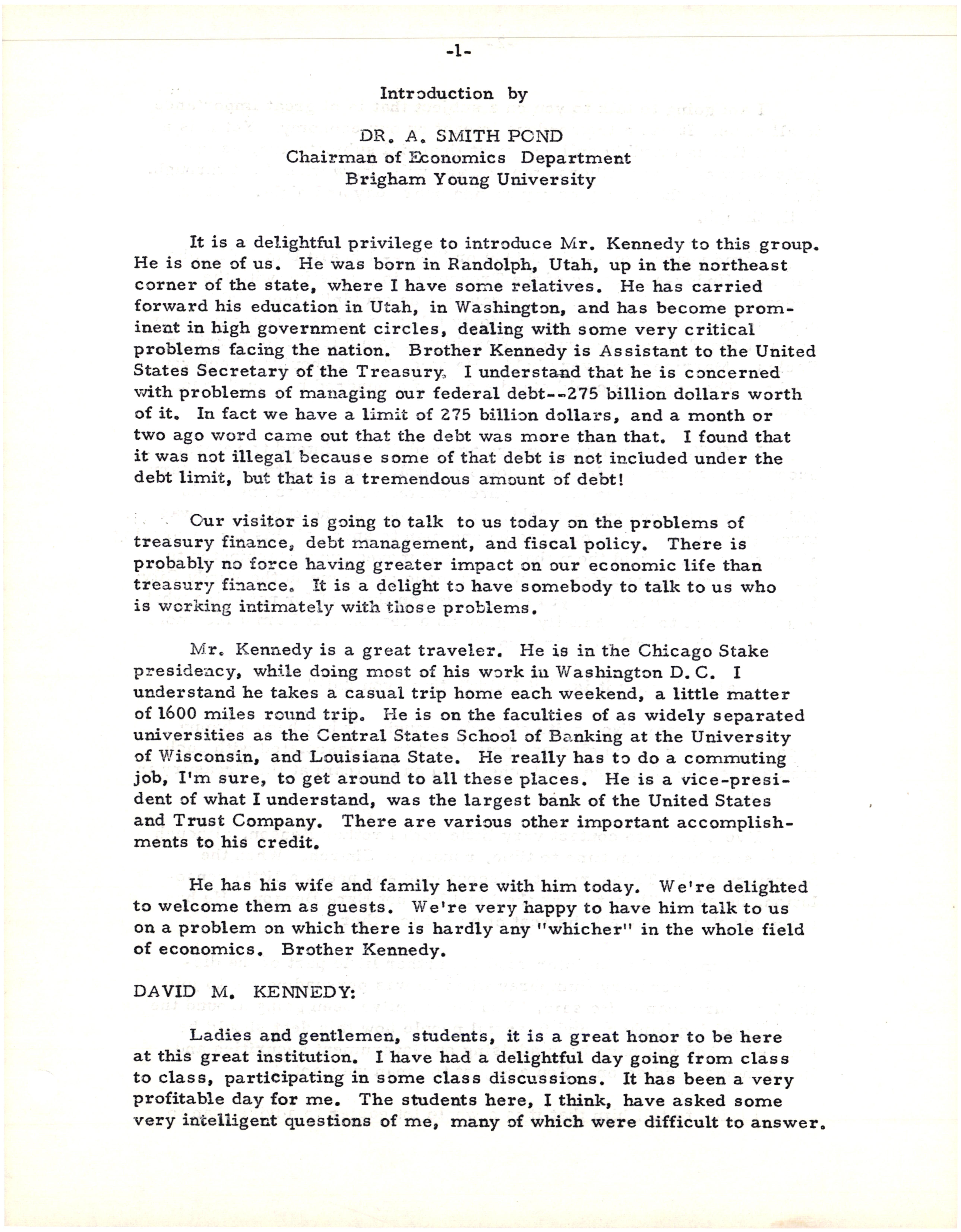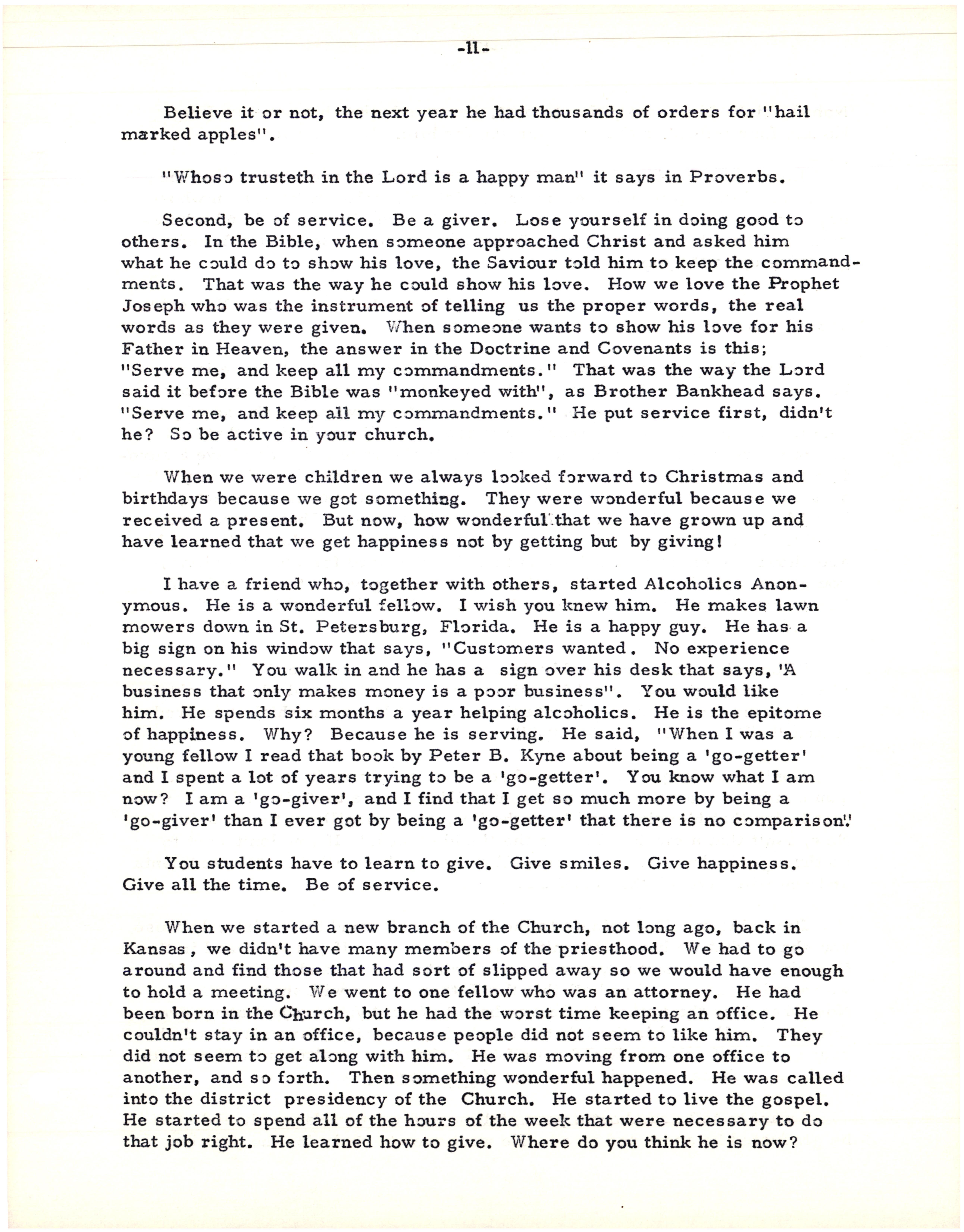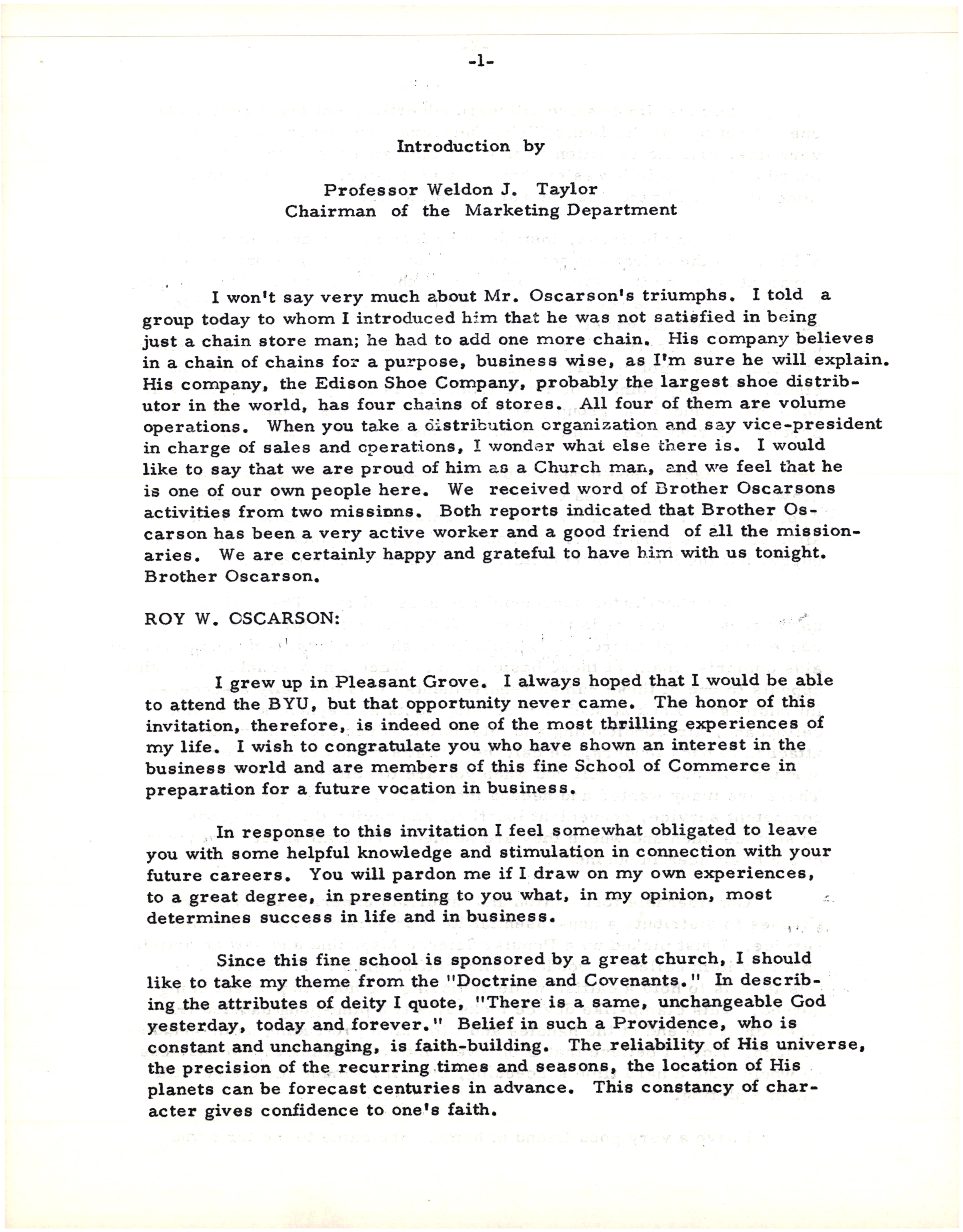 1954 Lectures on Executive Policy from College of Commerce at BYU