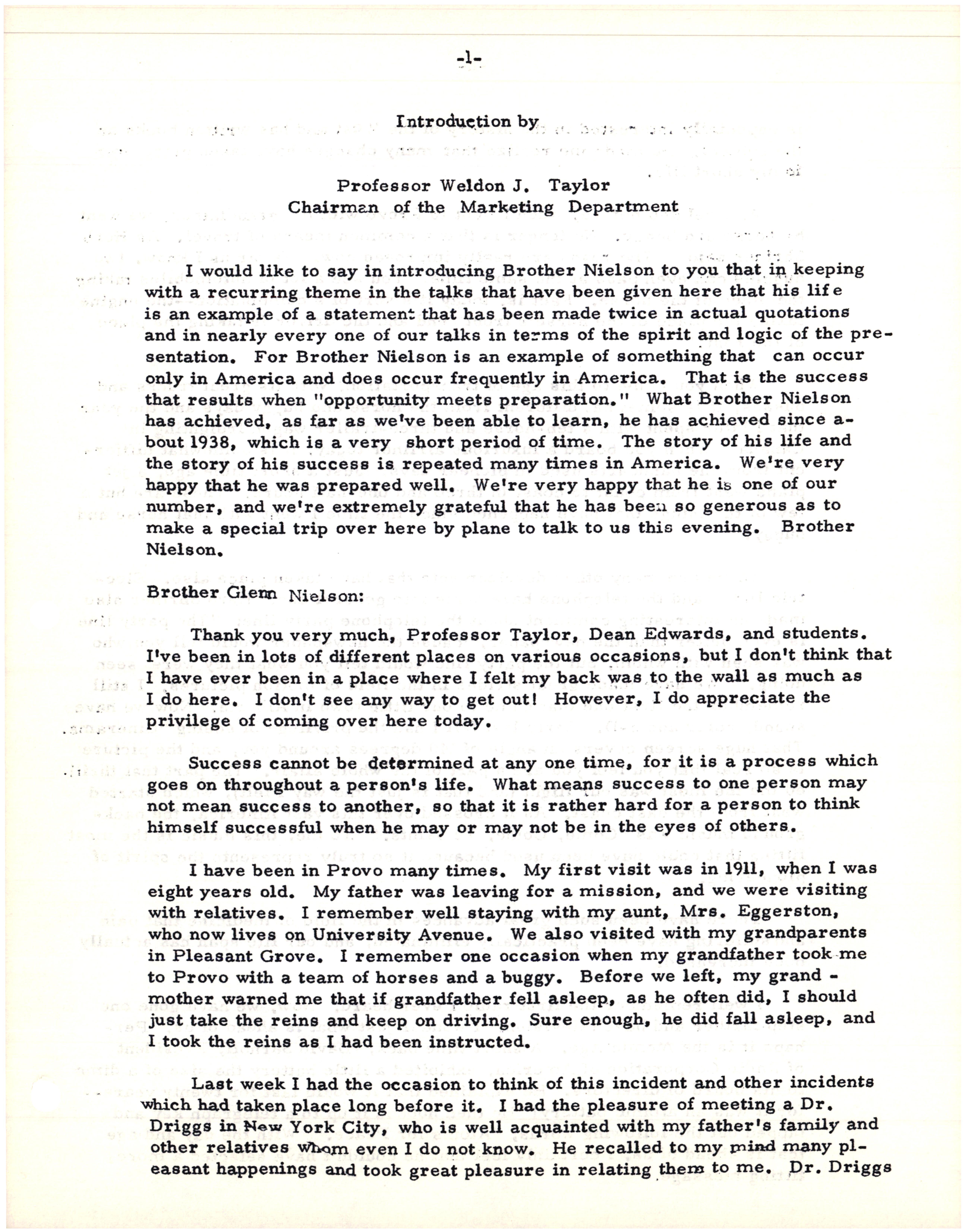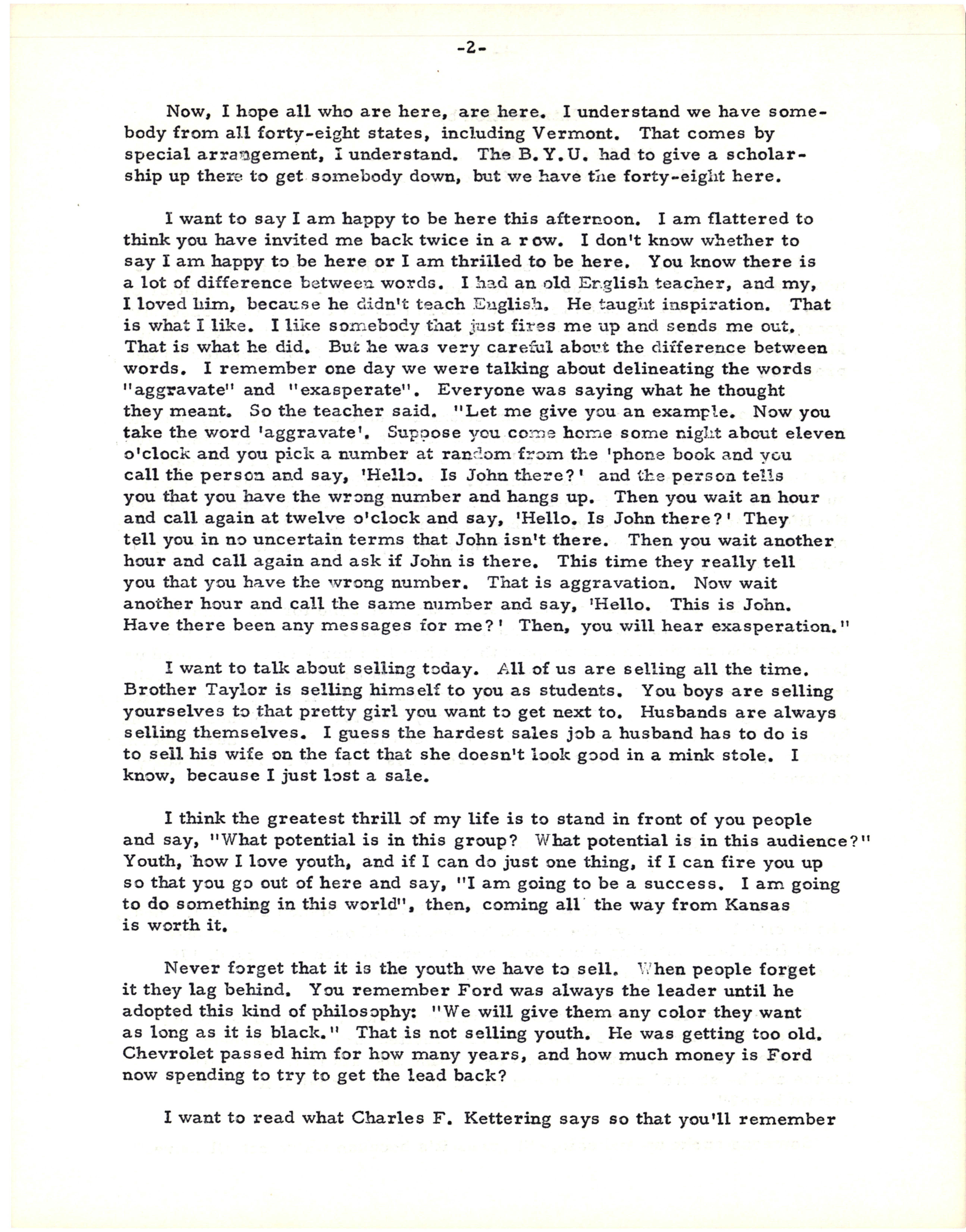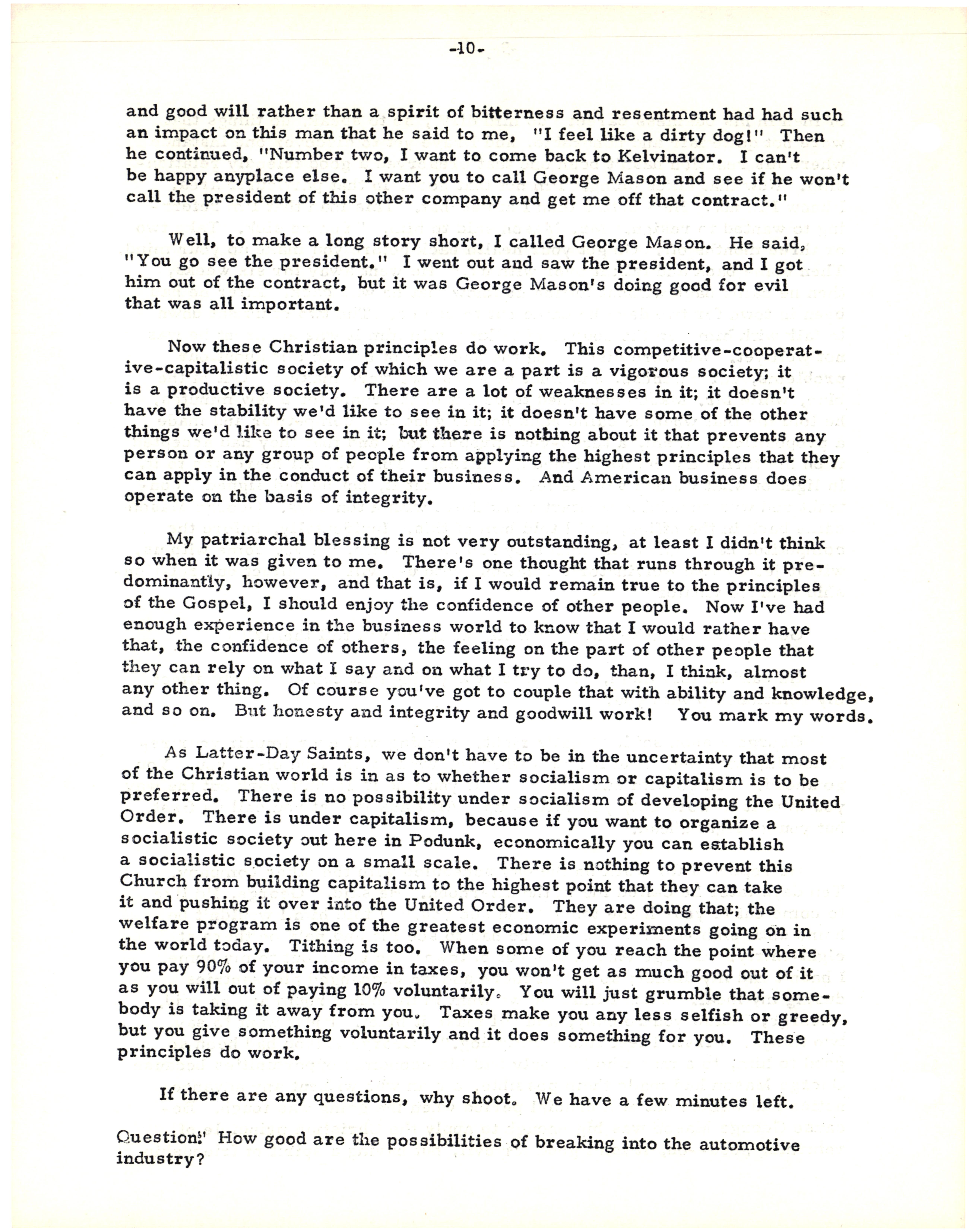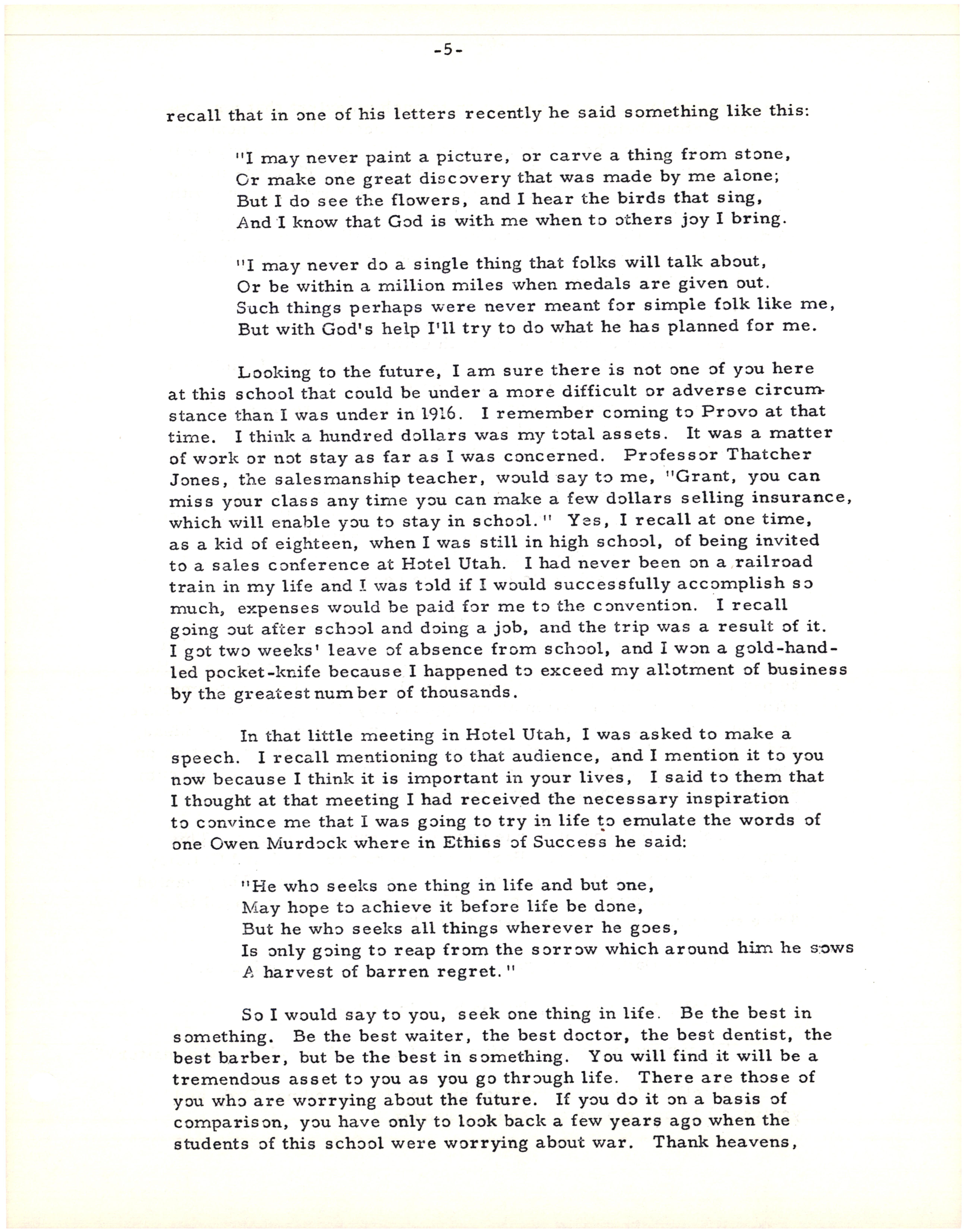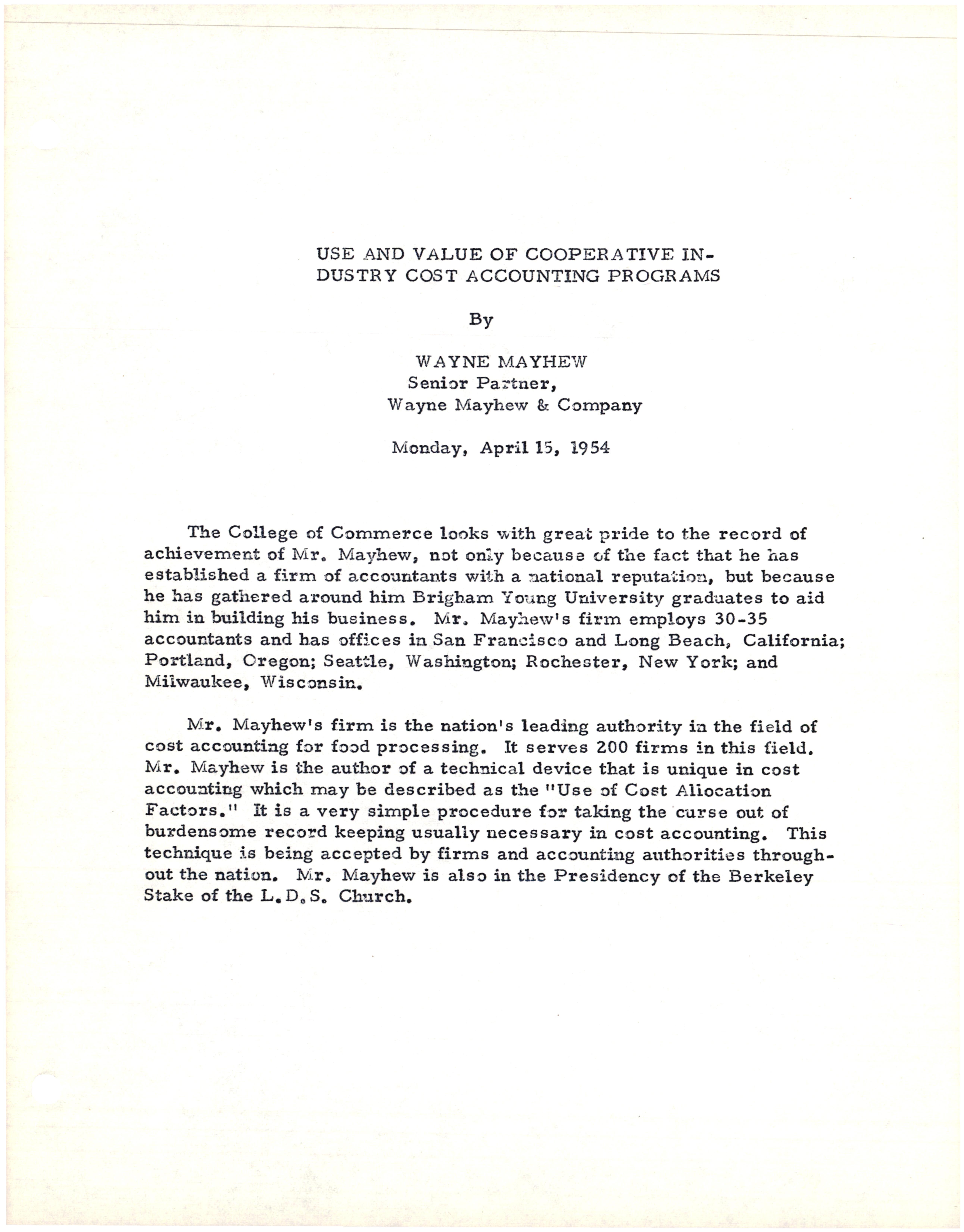 1954 Lectures on Executive Policy from College of Commerce at BYU