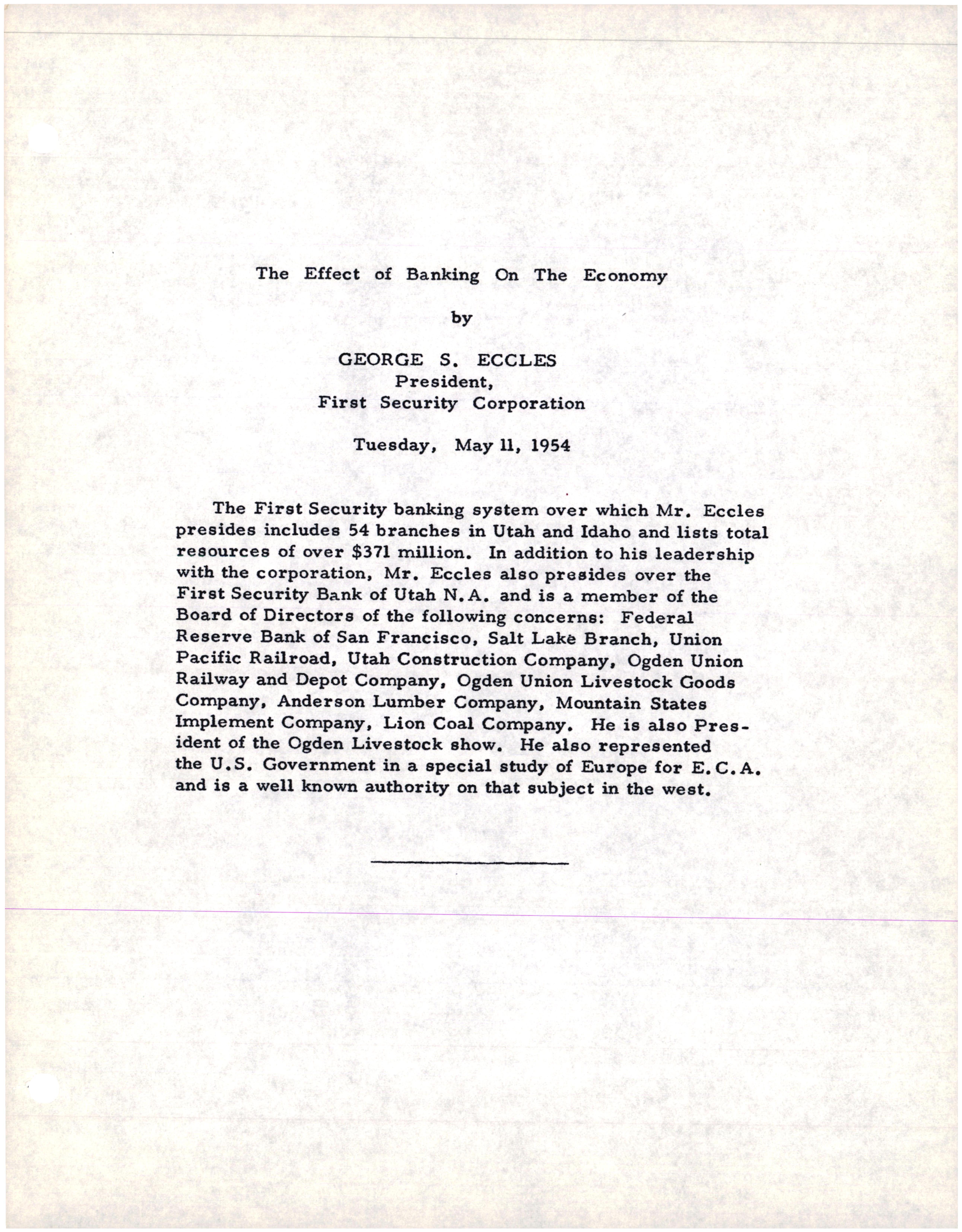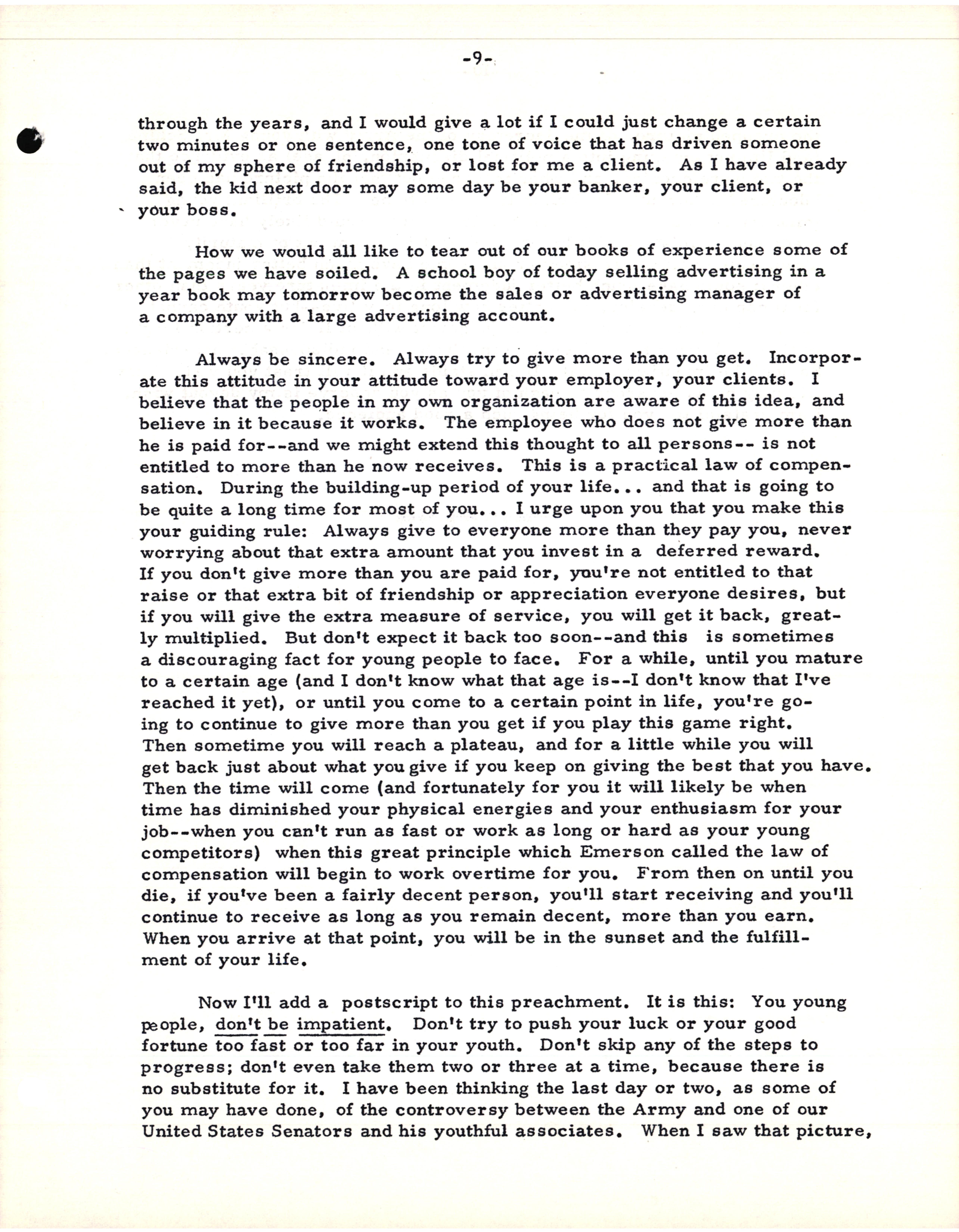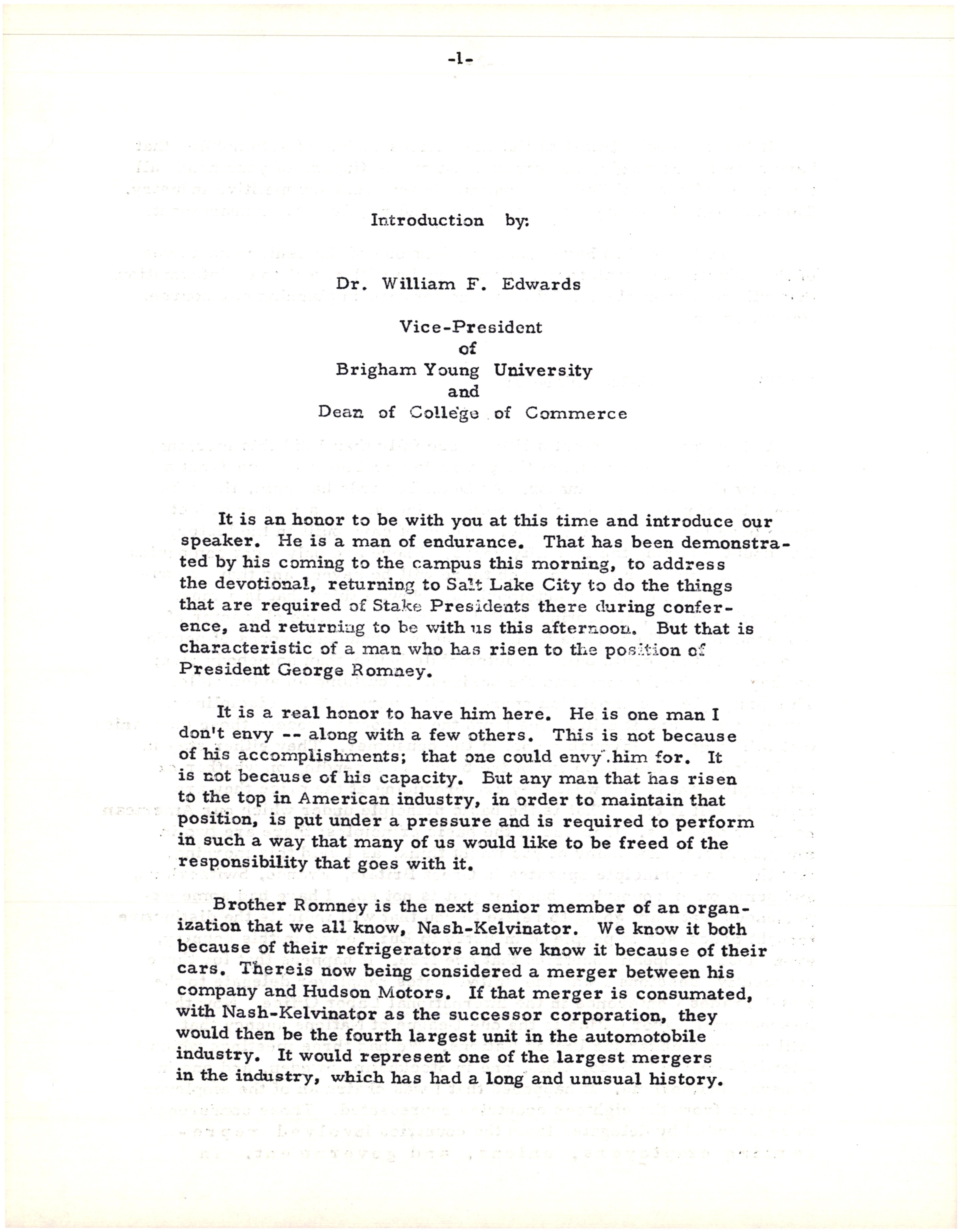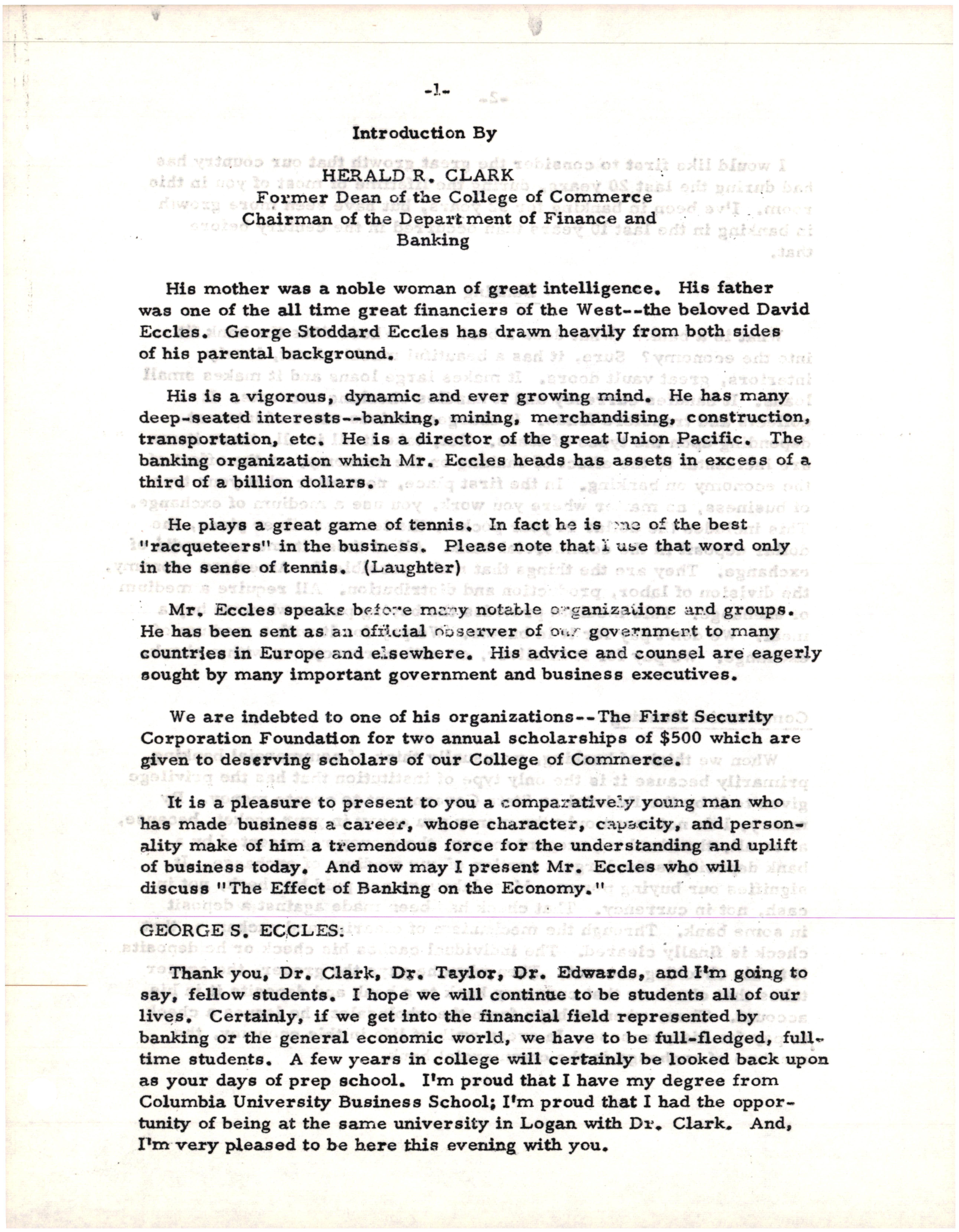 1954 Lectures on Executive Policy from College of Commerce at BYU