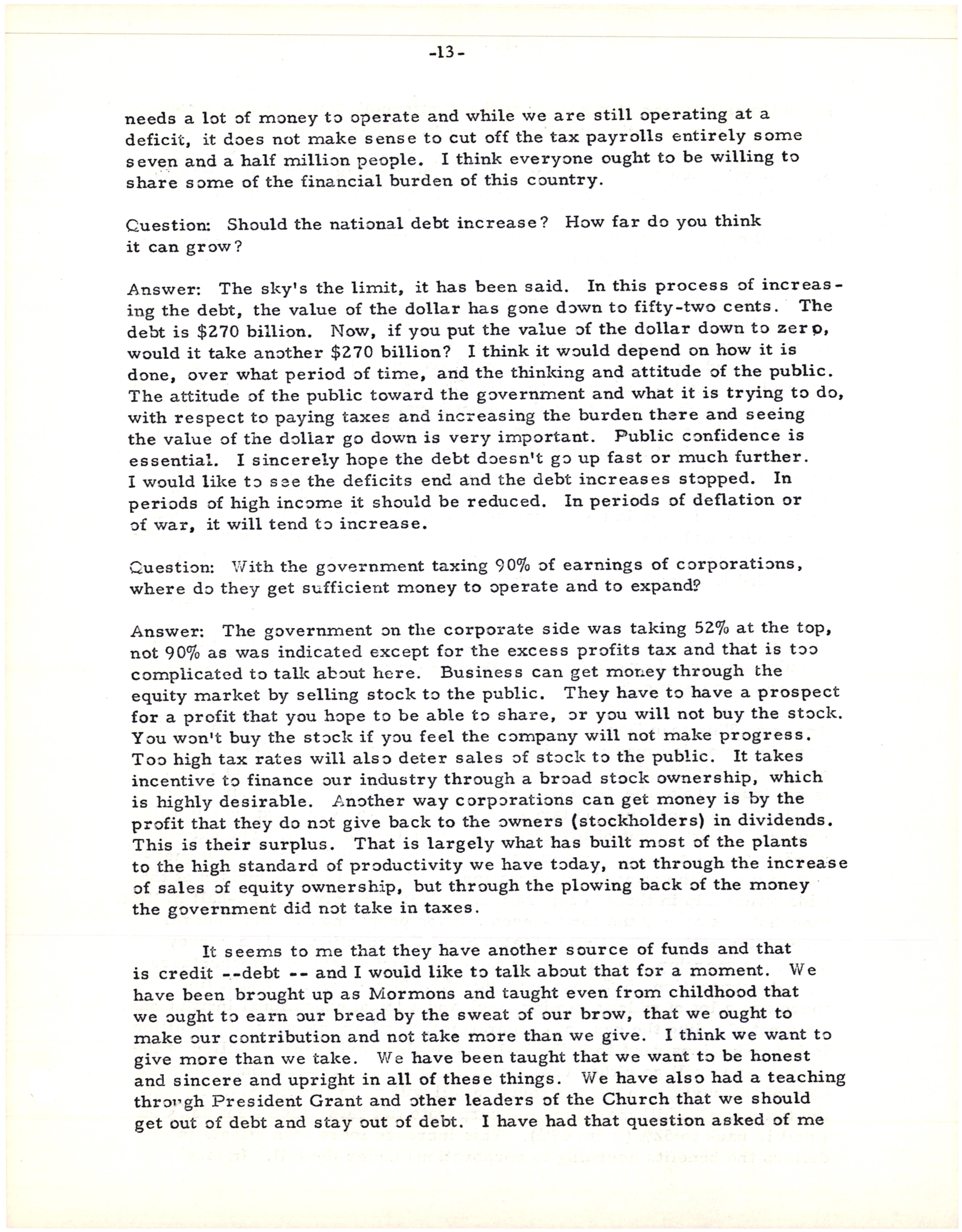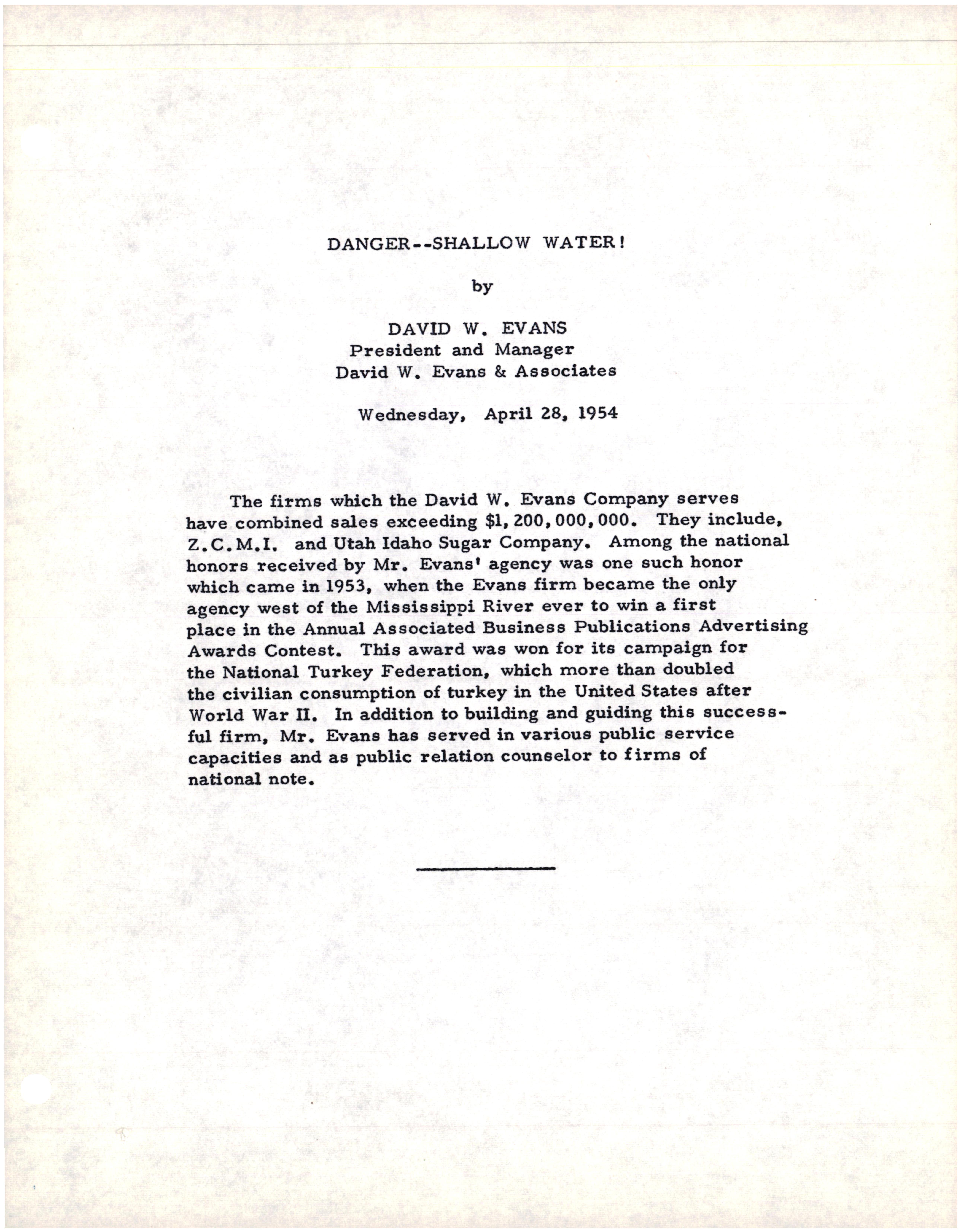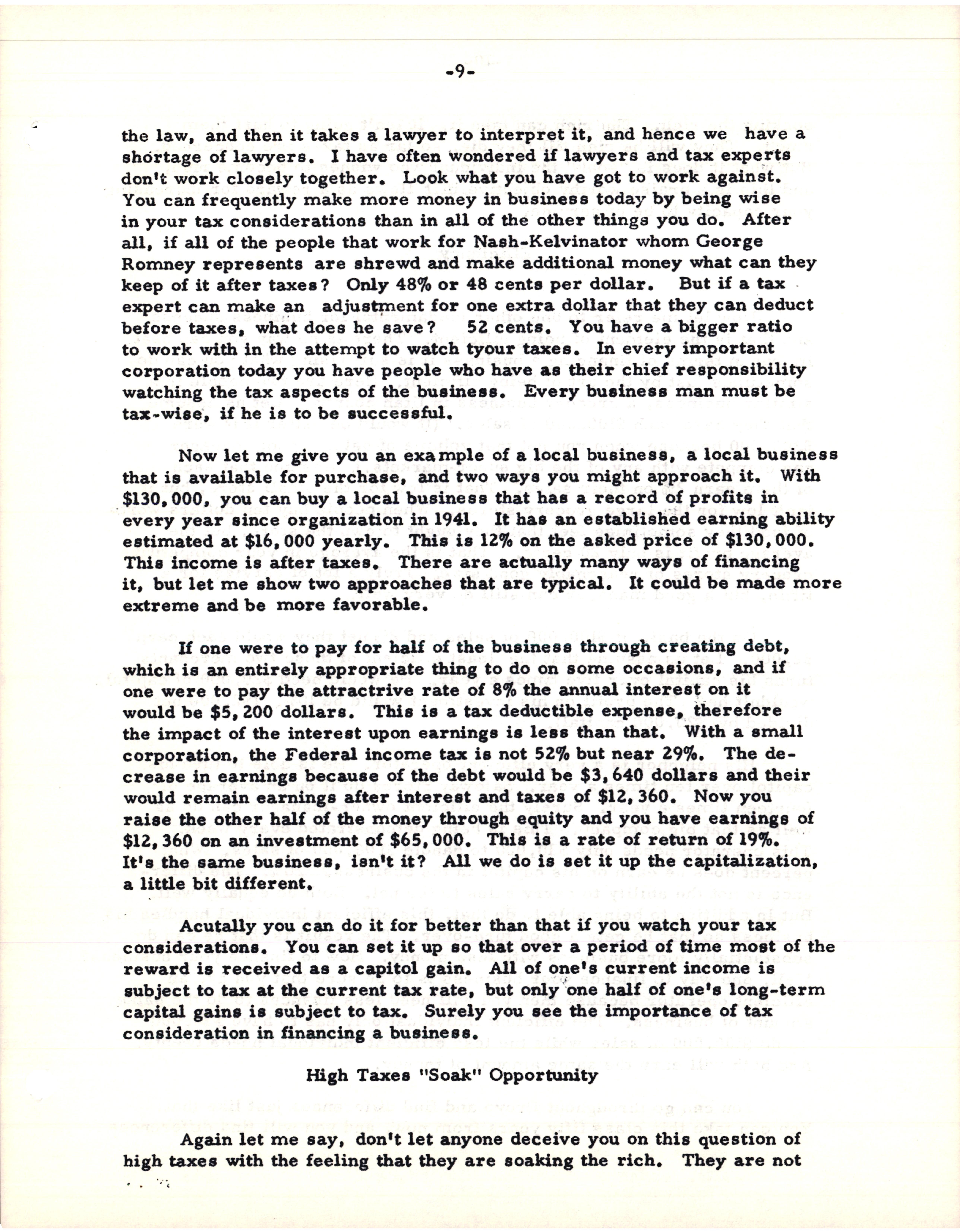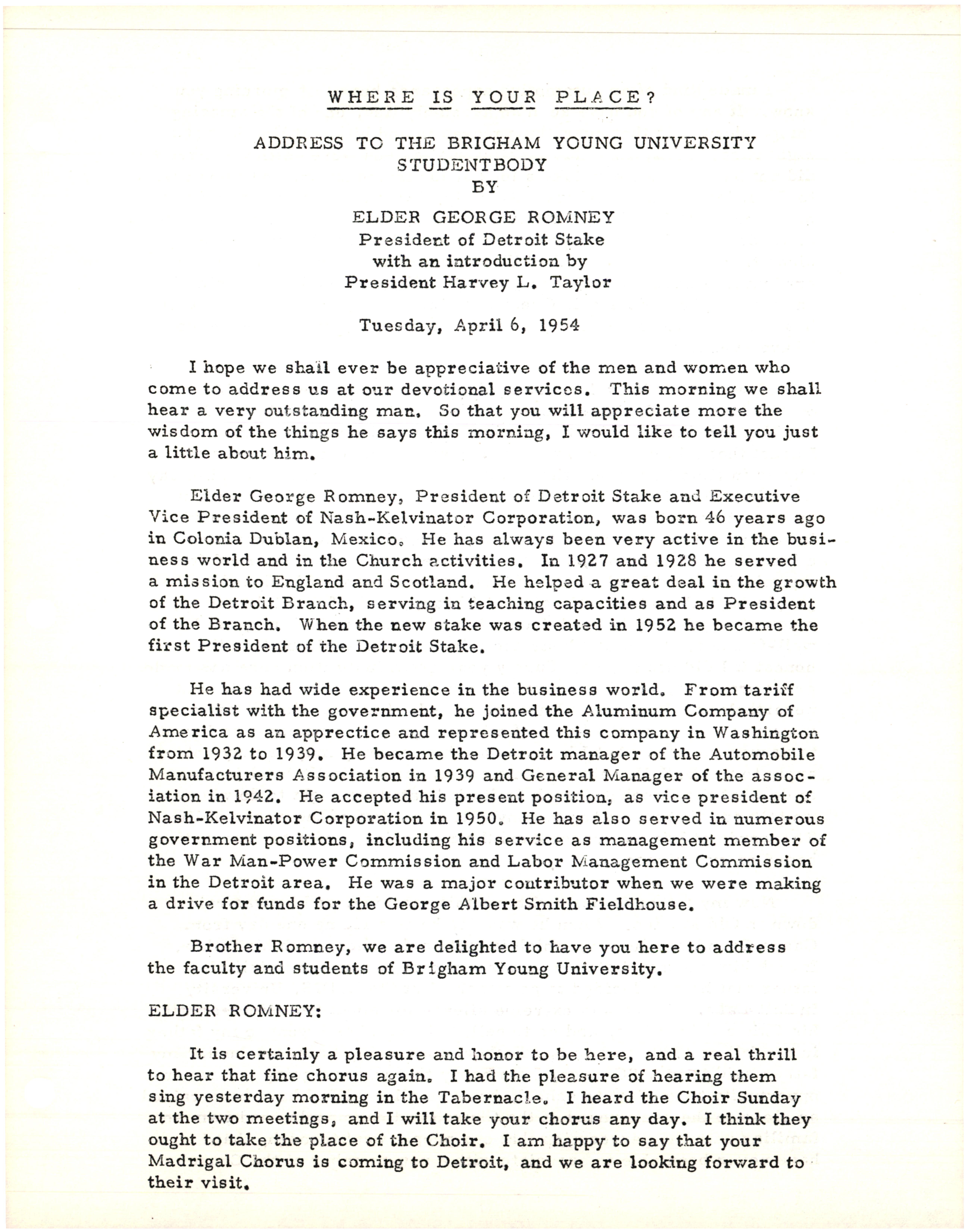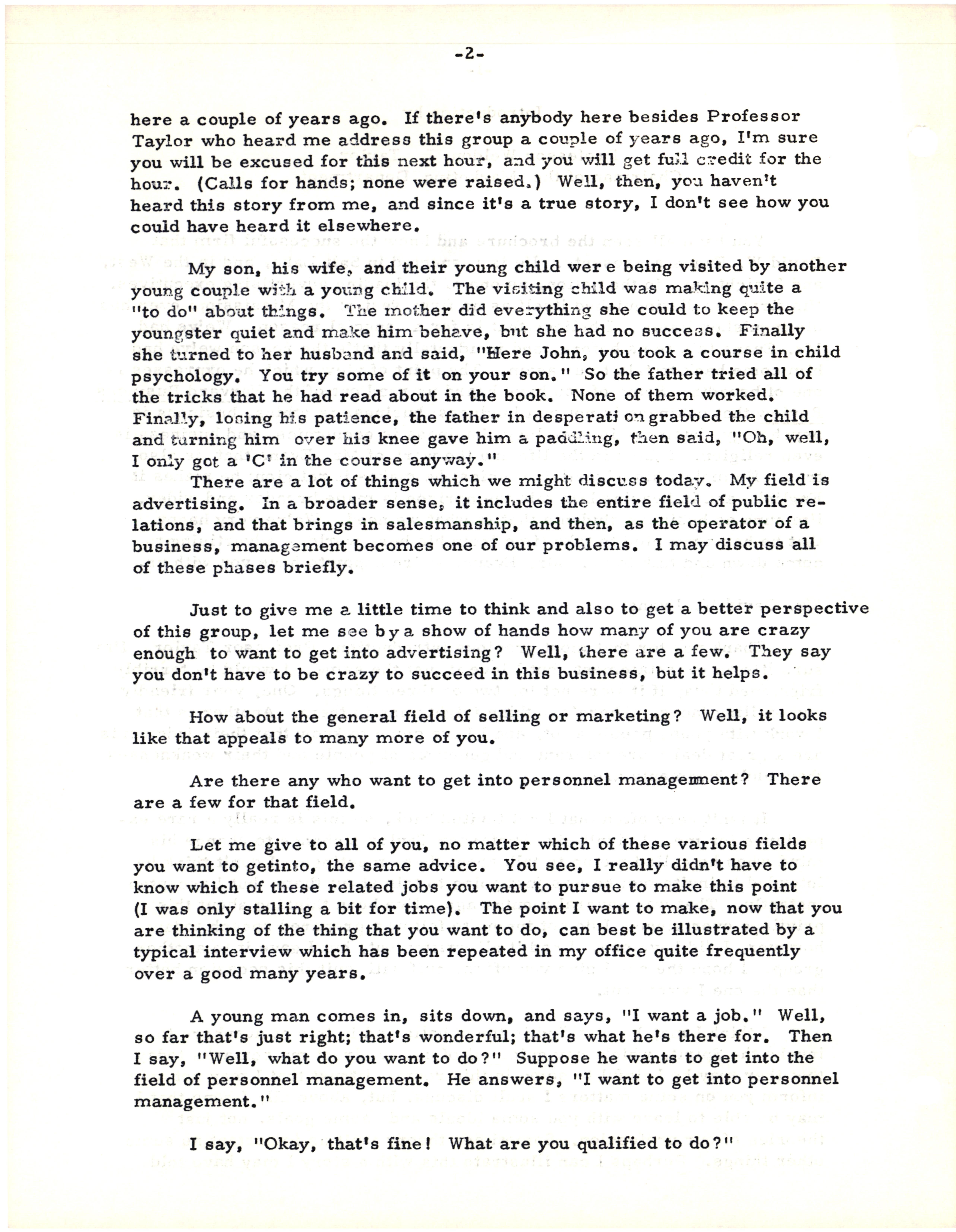 1954 Lectures on Executive Policy from College of Commerce at BYU