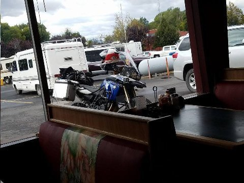 Above: F800 GS motorcycle outside Jerry's restaurant. Lakeview, OR. 22 September 2016.