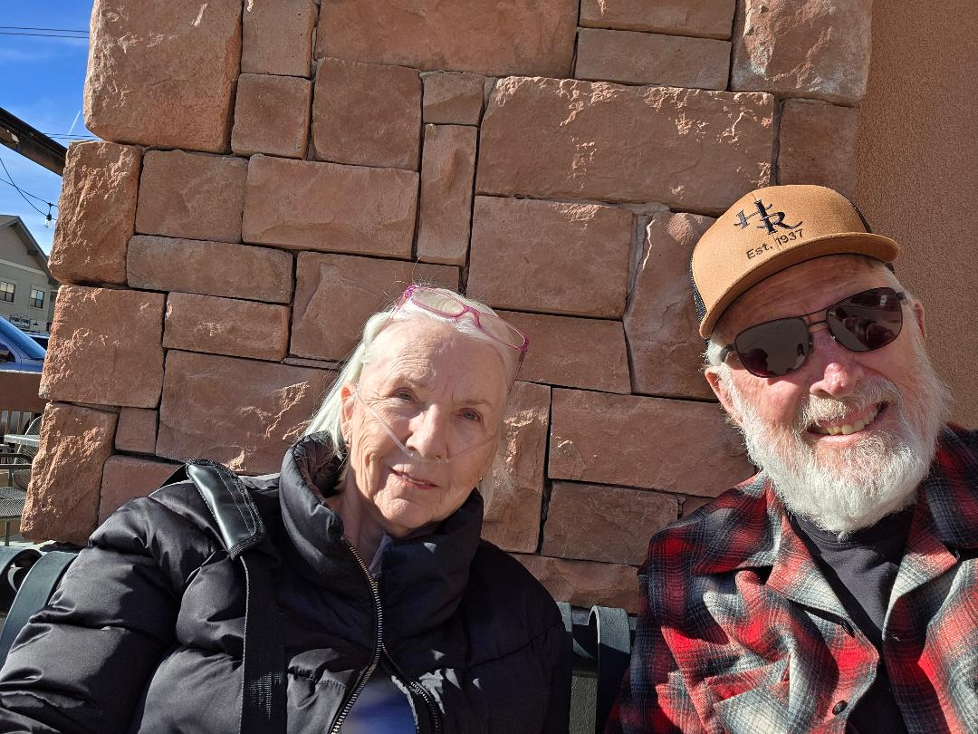 Two old geezers sitting in the warm sun post Fish and Chips at Brew Pub.