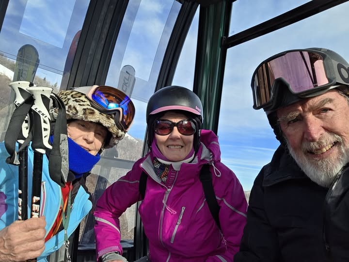 After enjoying a break together at my office at Empire Lodge, the three of us took Ruby Lift and Pinyon Lift together, after which we parted company... them back to the East Village and Mwah (sic) skiing to the Crown Point lift to start my composite exit runs.