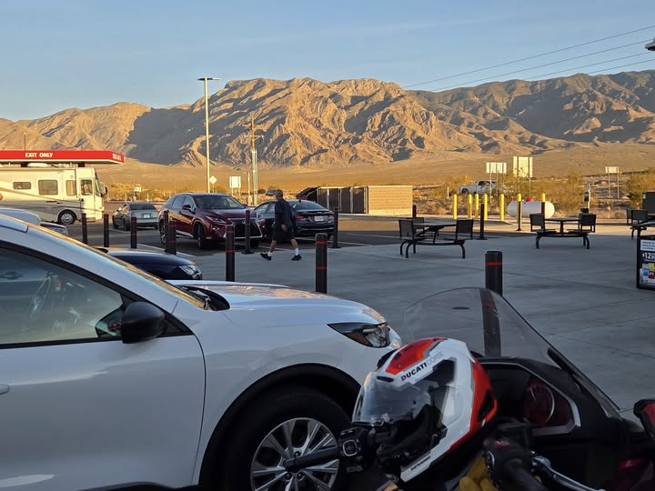 I love the effect of late PM shadowing on the dry, desert ranges. Short outing just to give the bike an early winter run. 65-mile loop south from Ivins on Old US 91. Brutal sun directly in my face! Then, in advancing dusk, northeast from Littlefield, AZ on I-15 up the fabulous Virgin River Gorge back to Ivins.