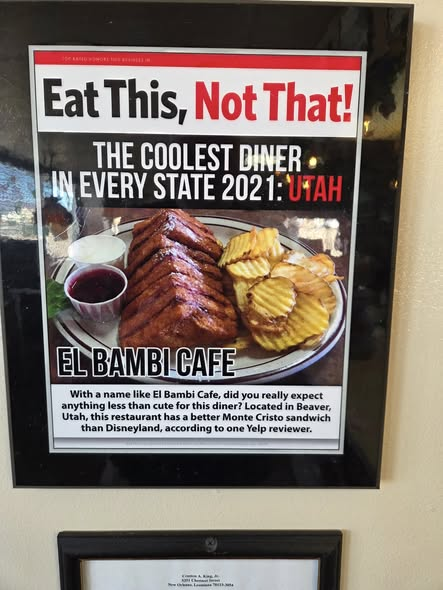 KILROY BREAKFAST RESTAURANT MINI REVIEWS. EL BAMBI, BEAVER, UTAH, 11 November 2025.