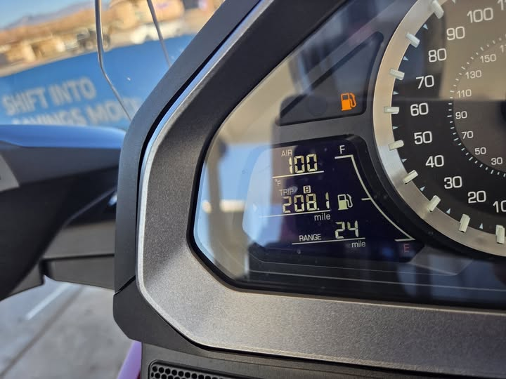 Round trip/Ivins Summerlin, NV 269 miles. Image. 100F ambient temp. Miles since last gas: 208. Remaing range at this stop. 24.
