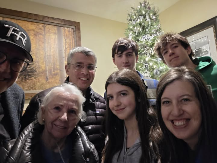 Above: Christmas Eve, 24 December 2025. Jim/Phoebe Haileys in FL visiting the other grandparents, Gerry and Mary. Jake/Stephanie Taylors in Park City, visiting us grandparents.