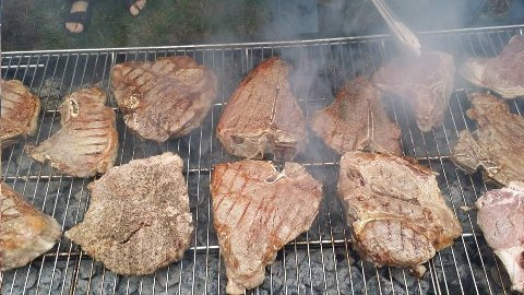 Above: Two inch thick steaks. Big Dog staple at final dinner. 11 August 2015.