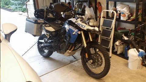 Back on the road. BMW F800 GS motorcycle. Going to Big Dog. Golden, CO, tonight. 450 miles.