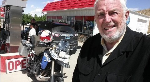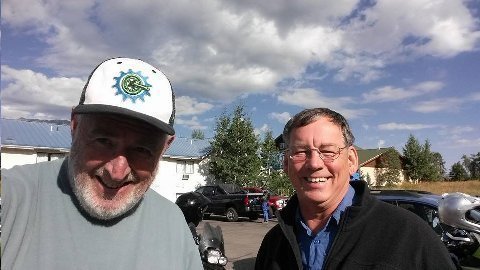 Seated, Art Dog, Richardson, TX. Three years ago riding the Dog near Lander, WY. From behind I watched Art Dog do a double somersault, 9 feet in the air, when his Kawasaki KLR dove into a ditch after taking a turn "too hot."