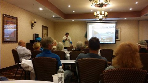 Above: Two post dinner presentations. 11 August 2015. Reno Dog's 8000 mile motorcycle ride (BMW F800 GS) from Vladivostok to Latvia. Minnesota Dog's ride around Tonle Sap Lake in Cambodia.
